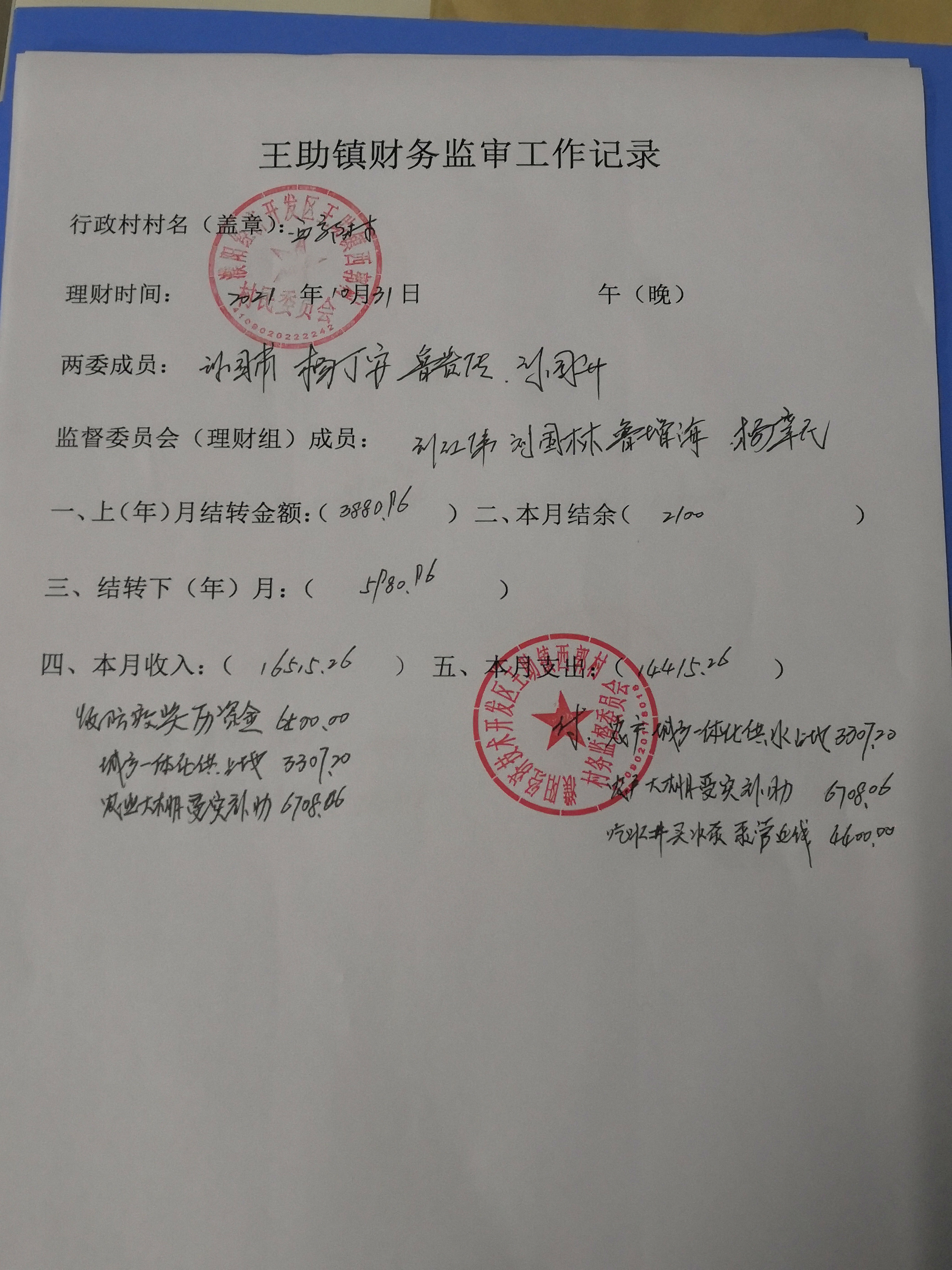 王助镇西郭村2021年9-10月份财务公开