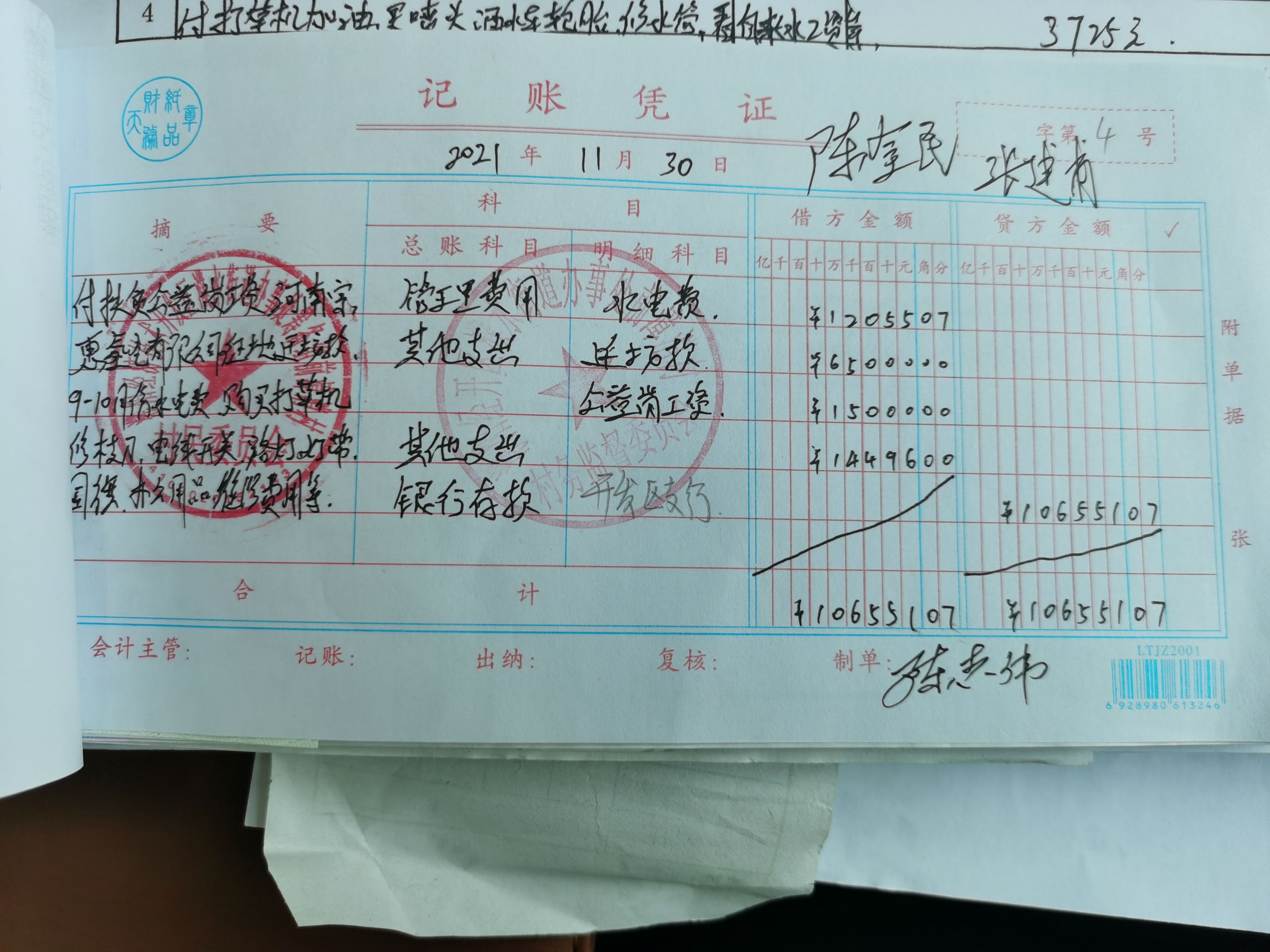 2021年前漳消11月份收支情况