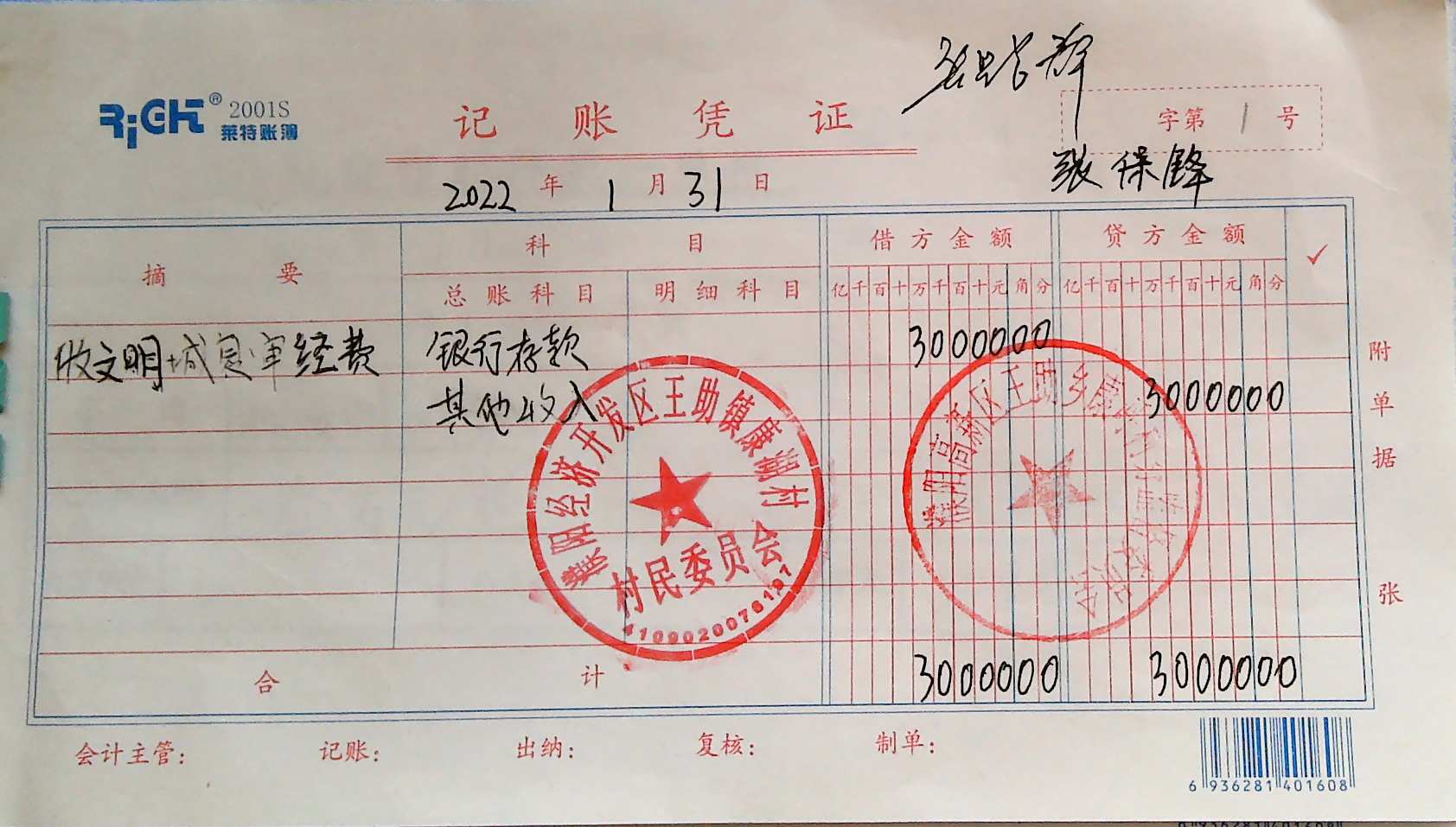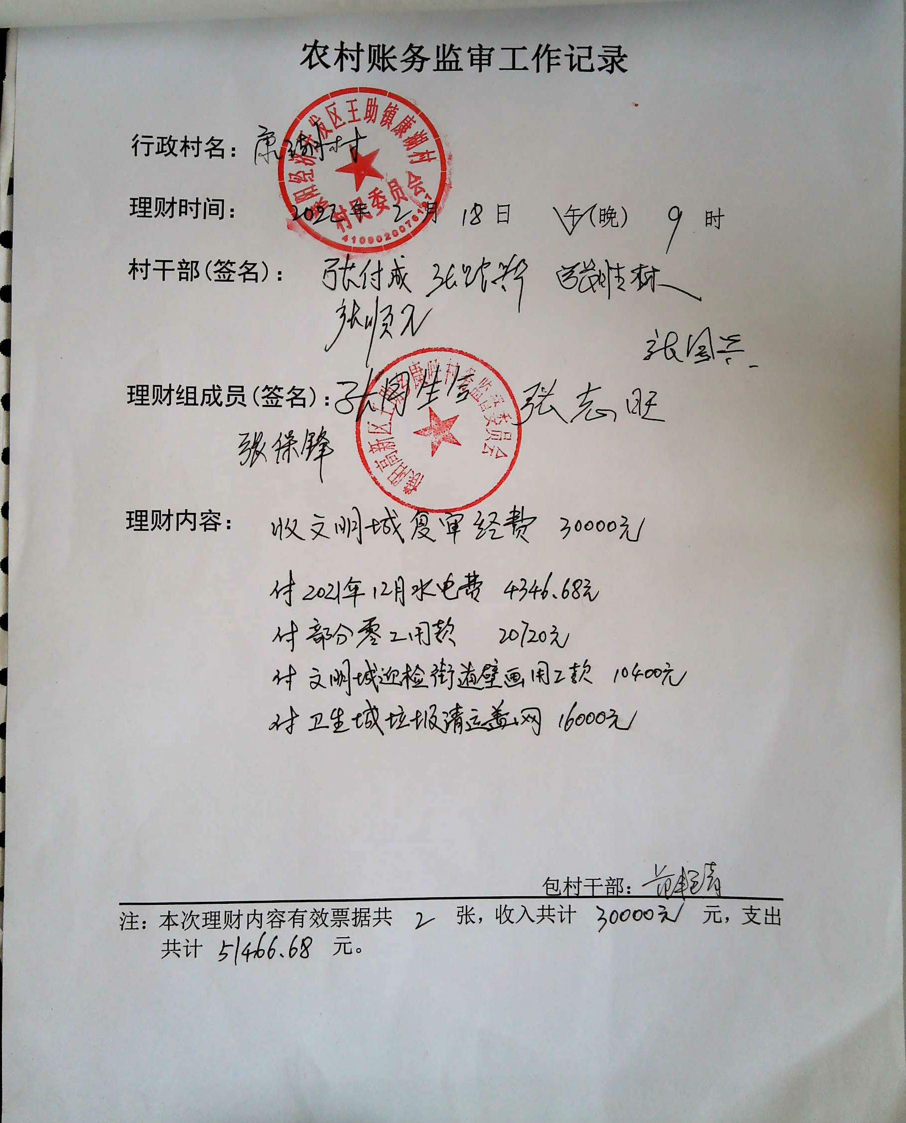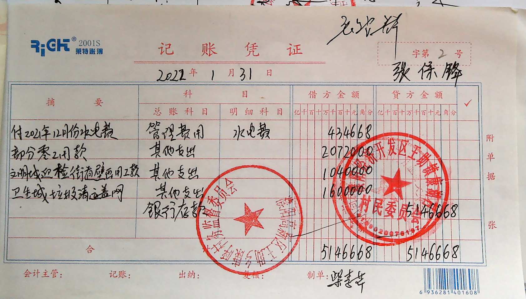康湖村财务公开2022年1月份