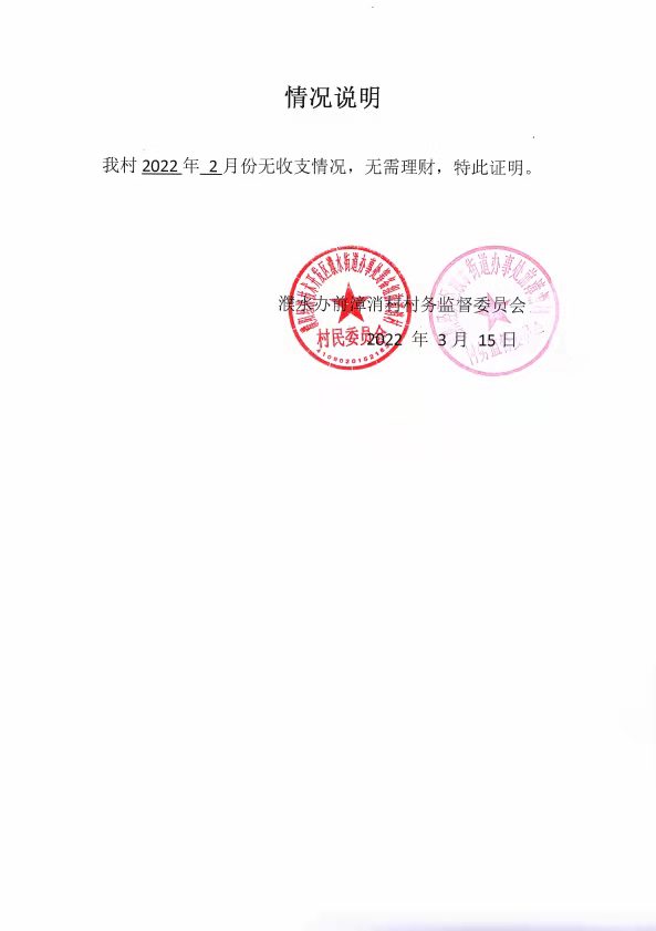 前漳消村财务公开2022年2月份