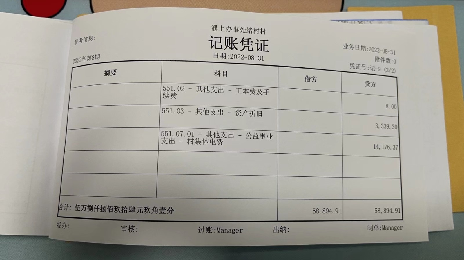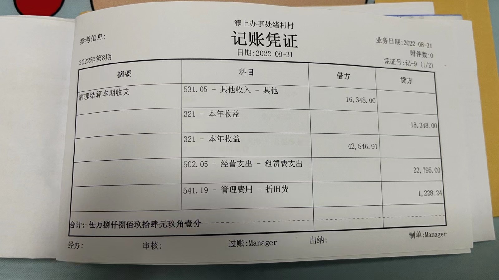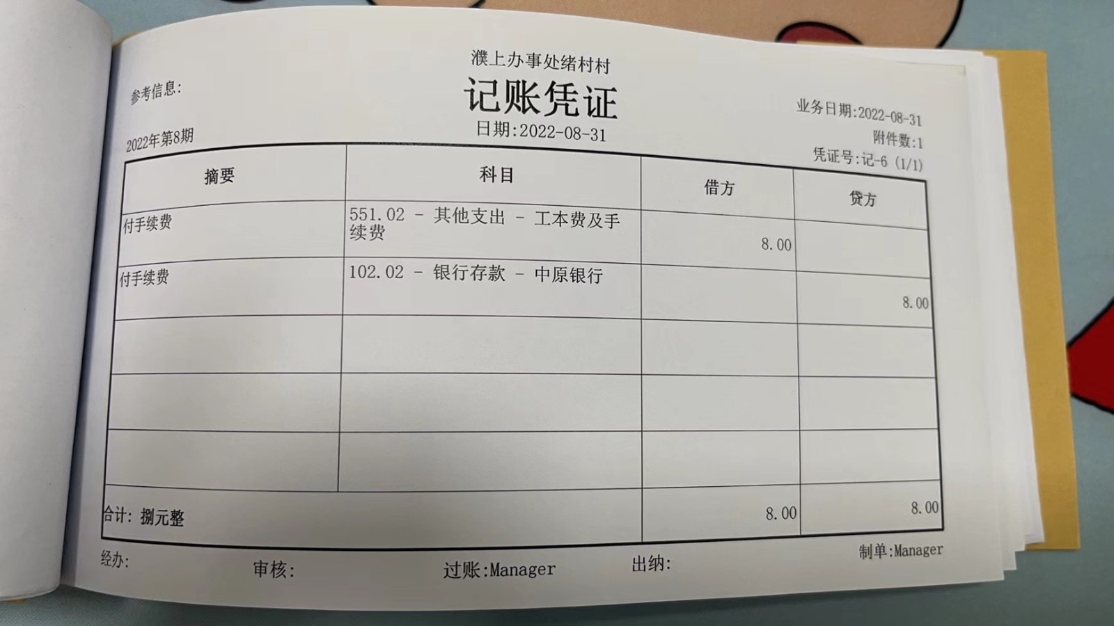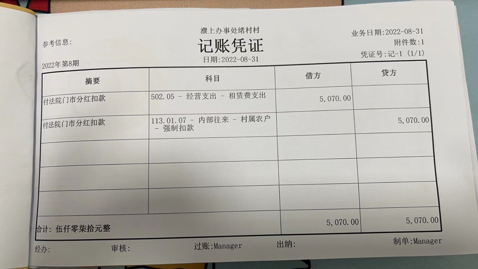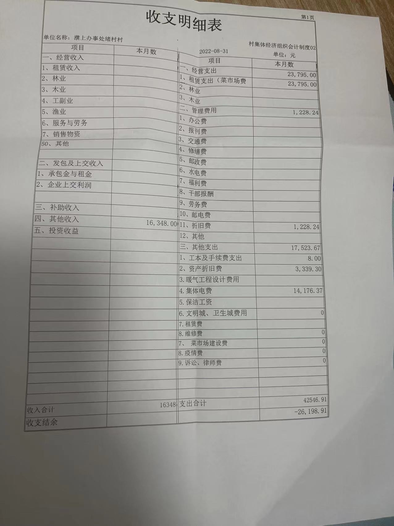 濮上办绪村2022年8月份财务公开