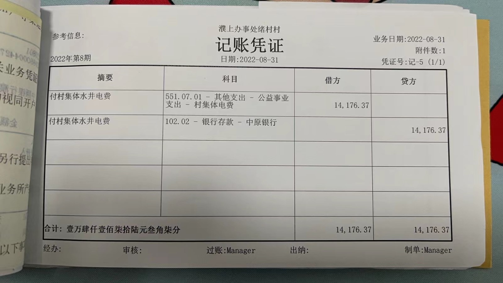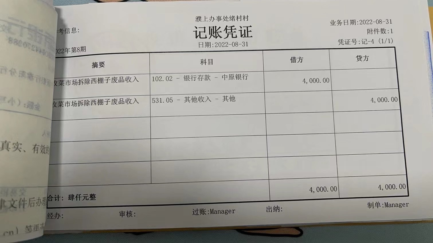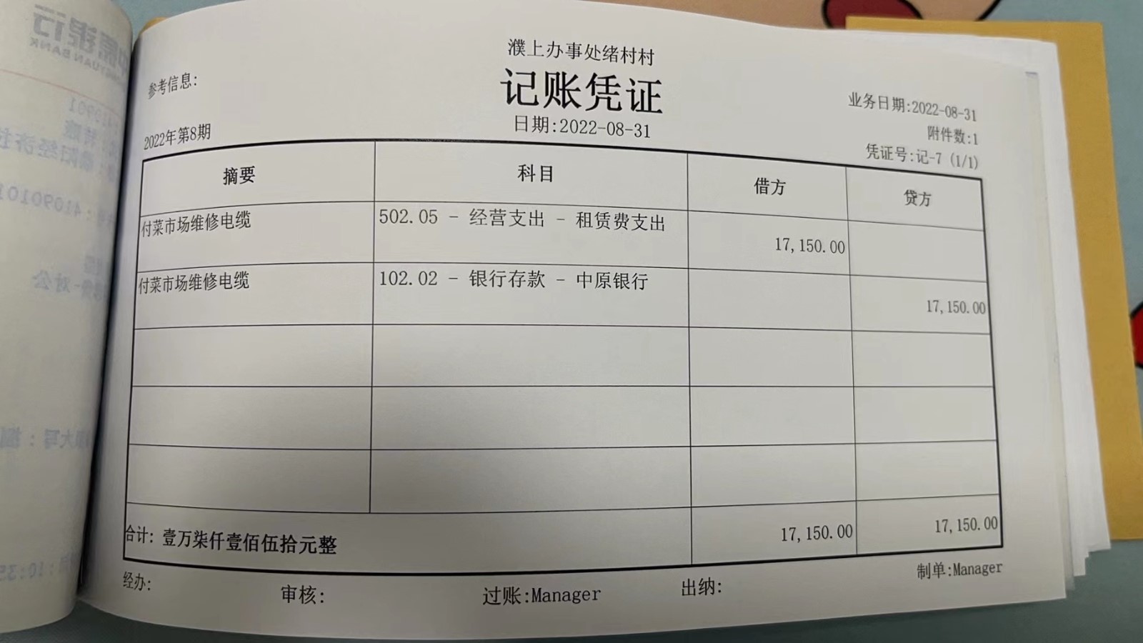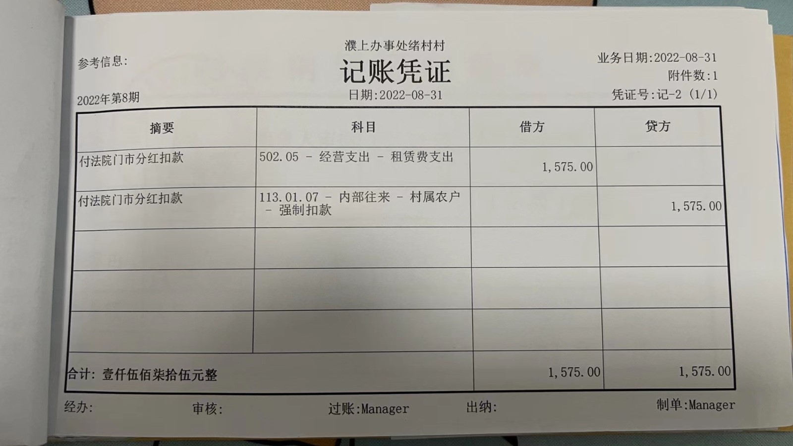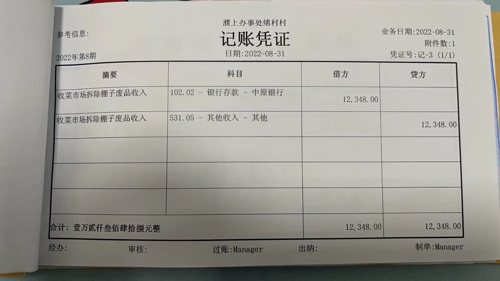 濮上办绪村2022年8月份财务公开