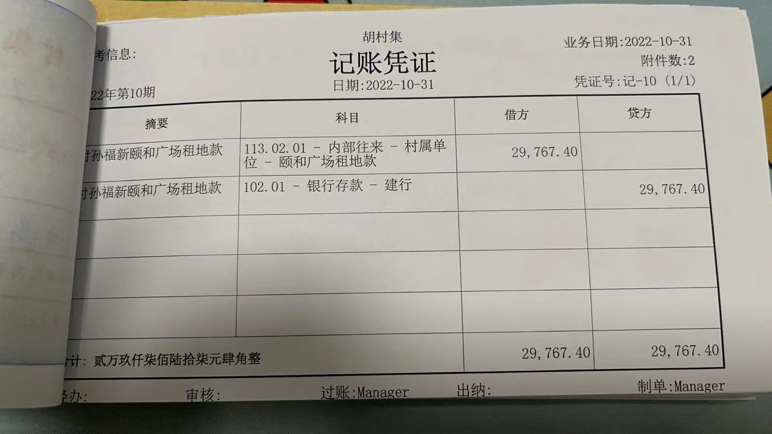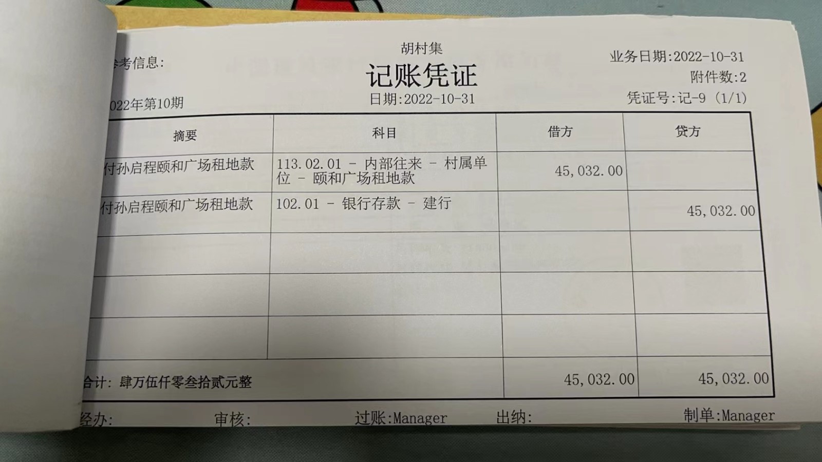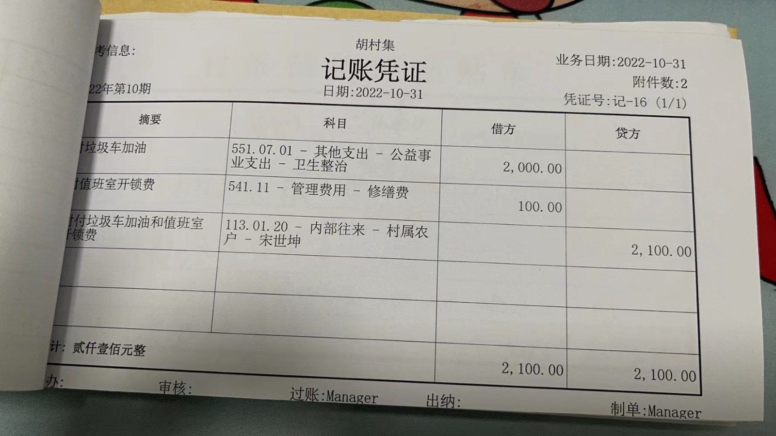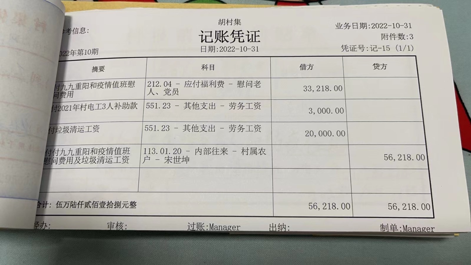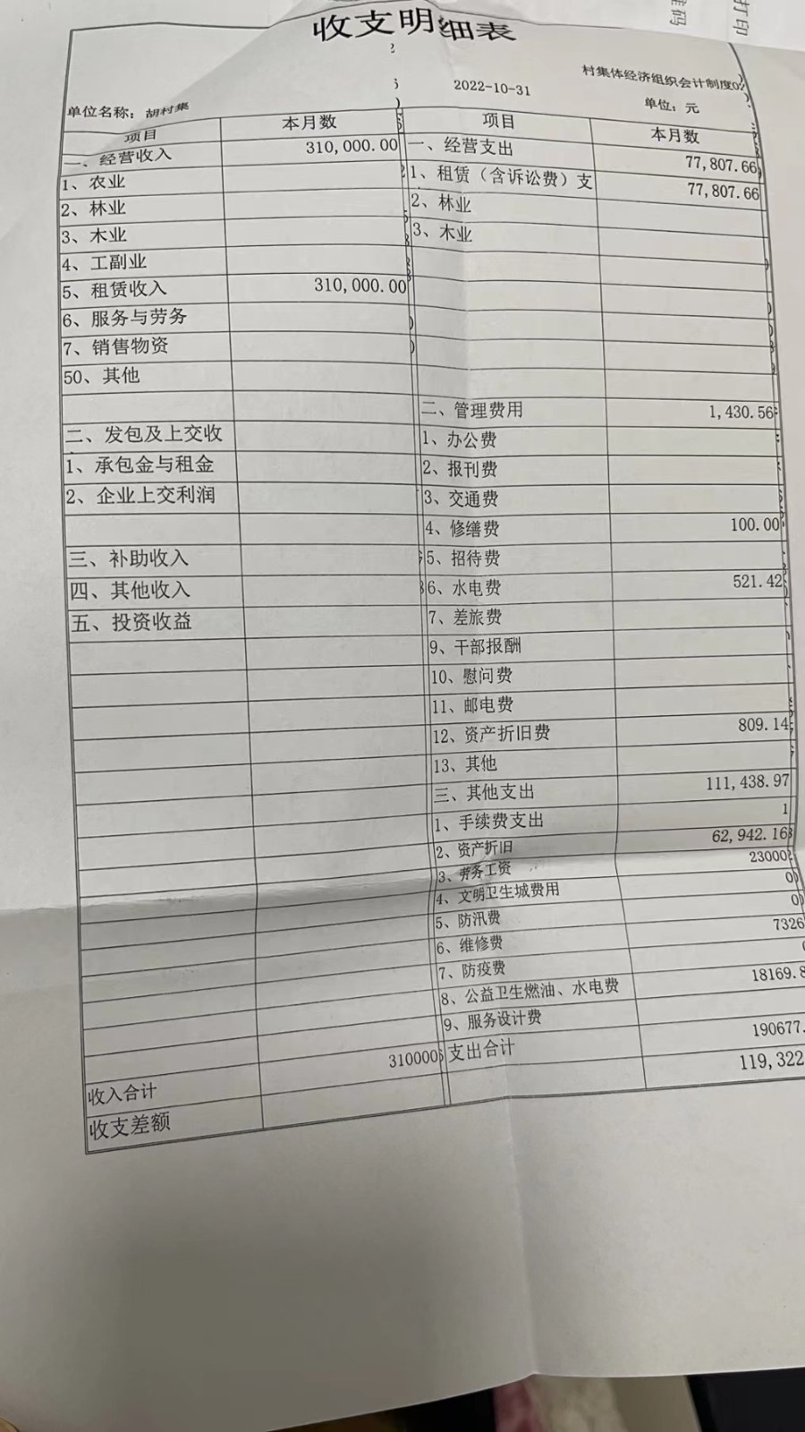 濮上办胡村集2022年10月份财务公开