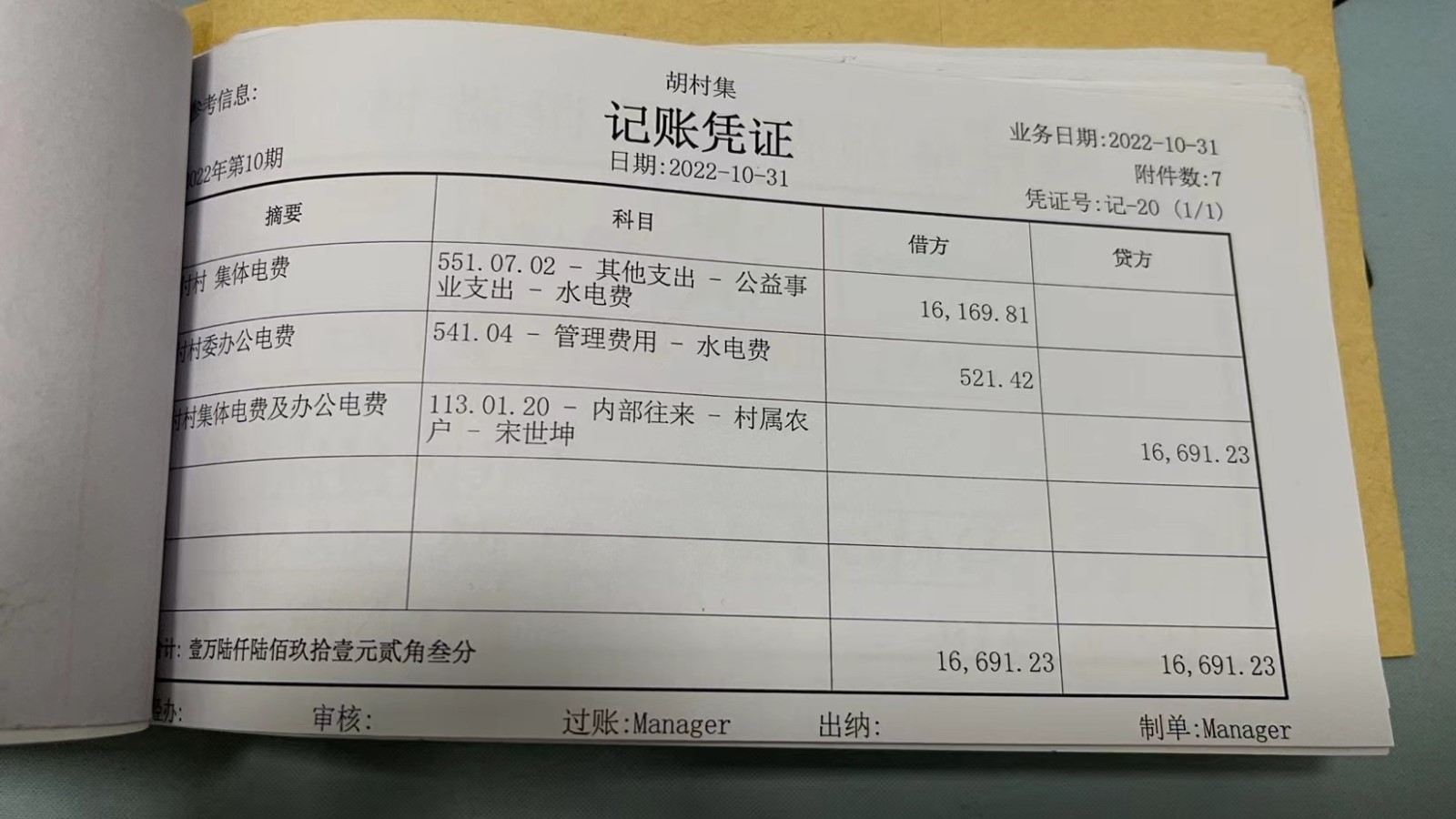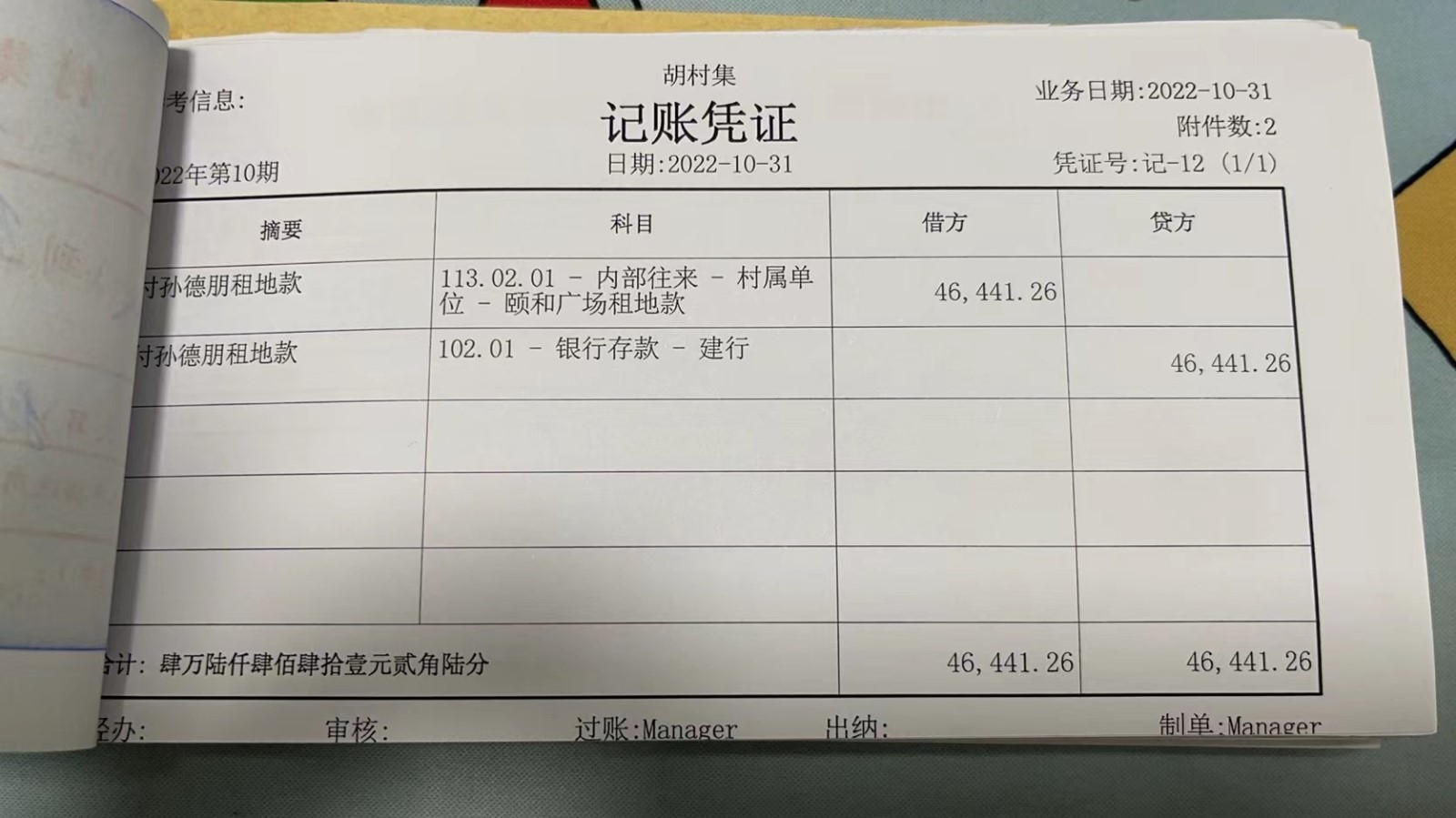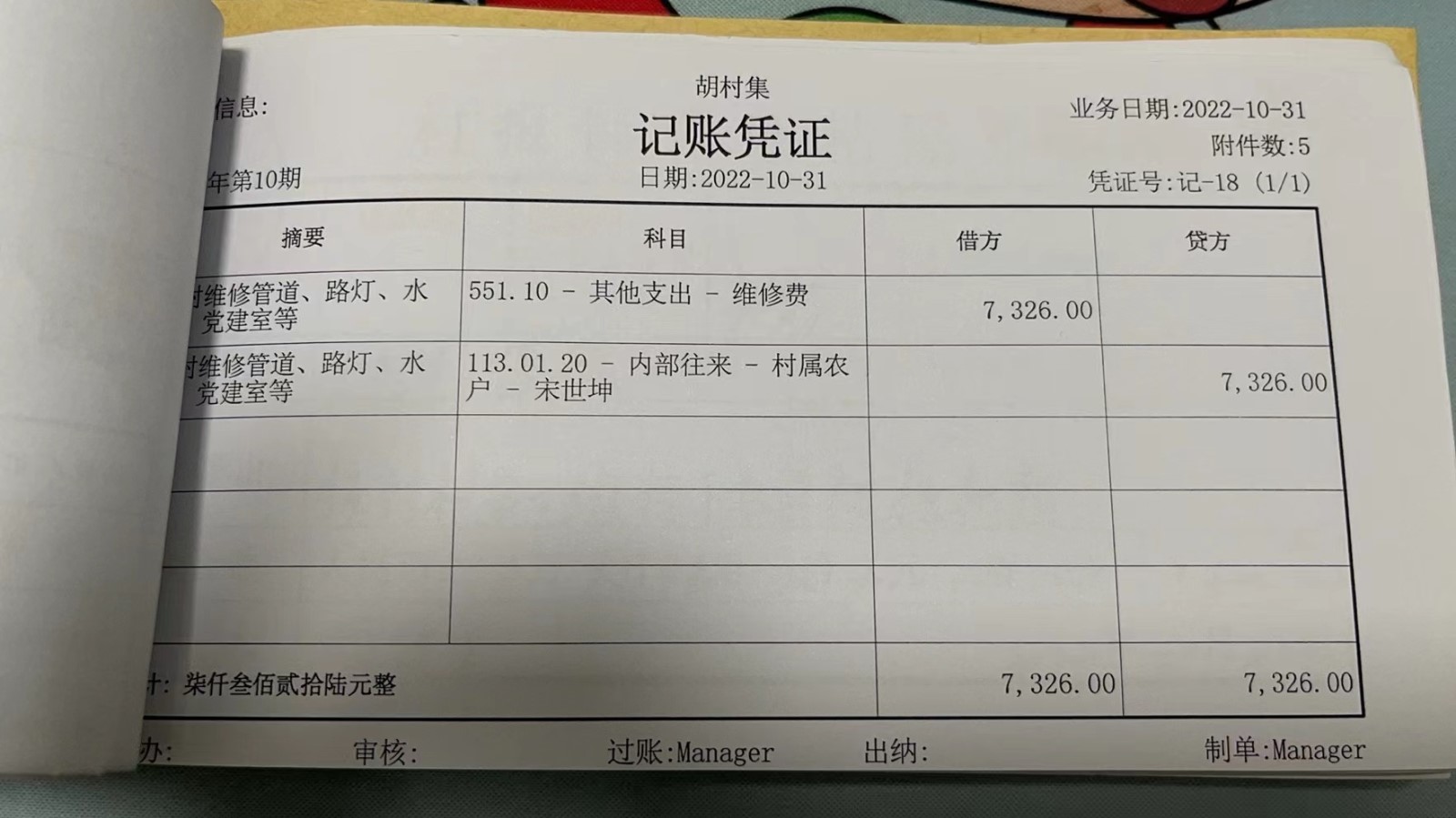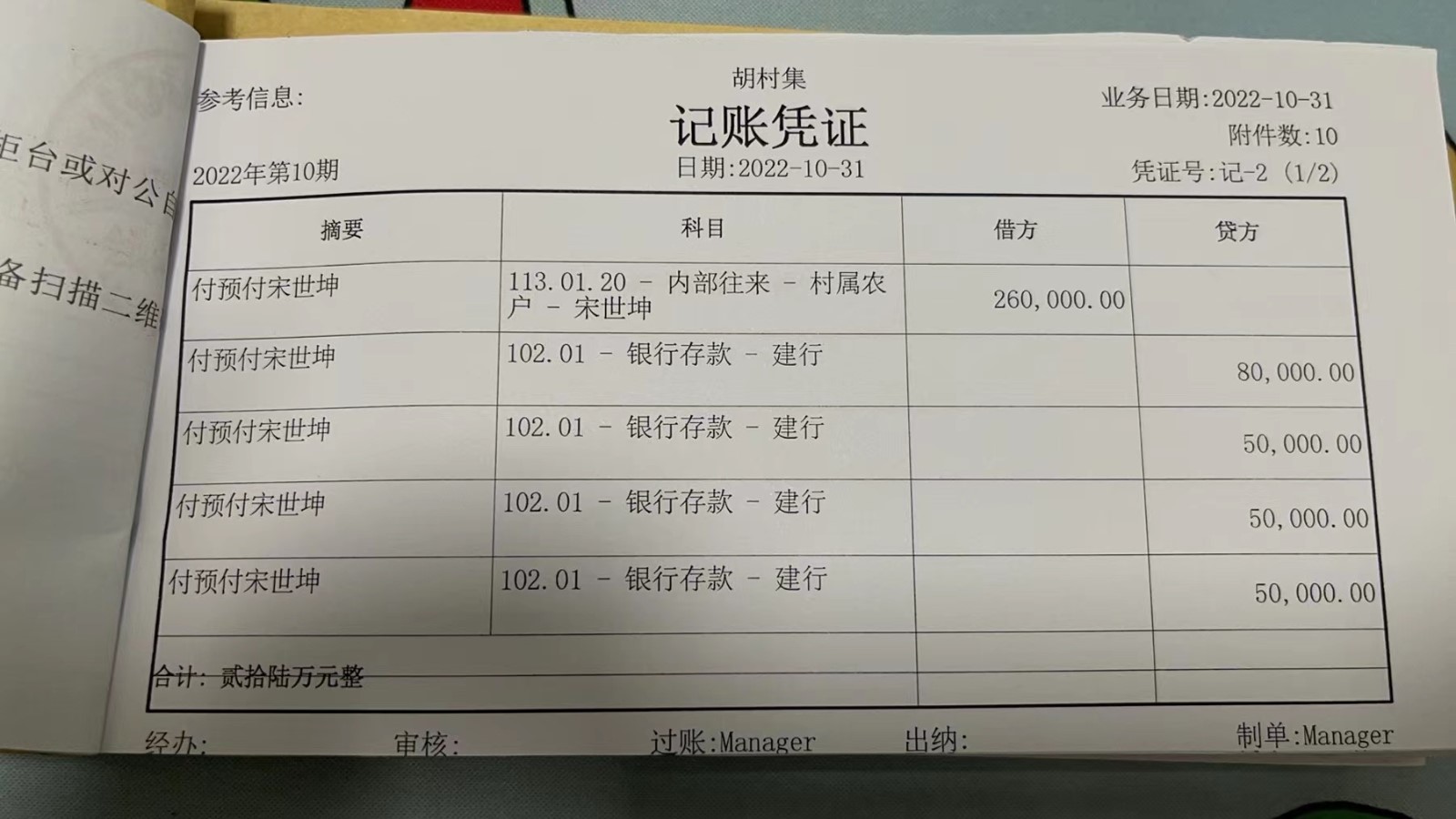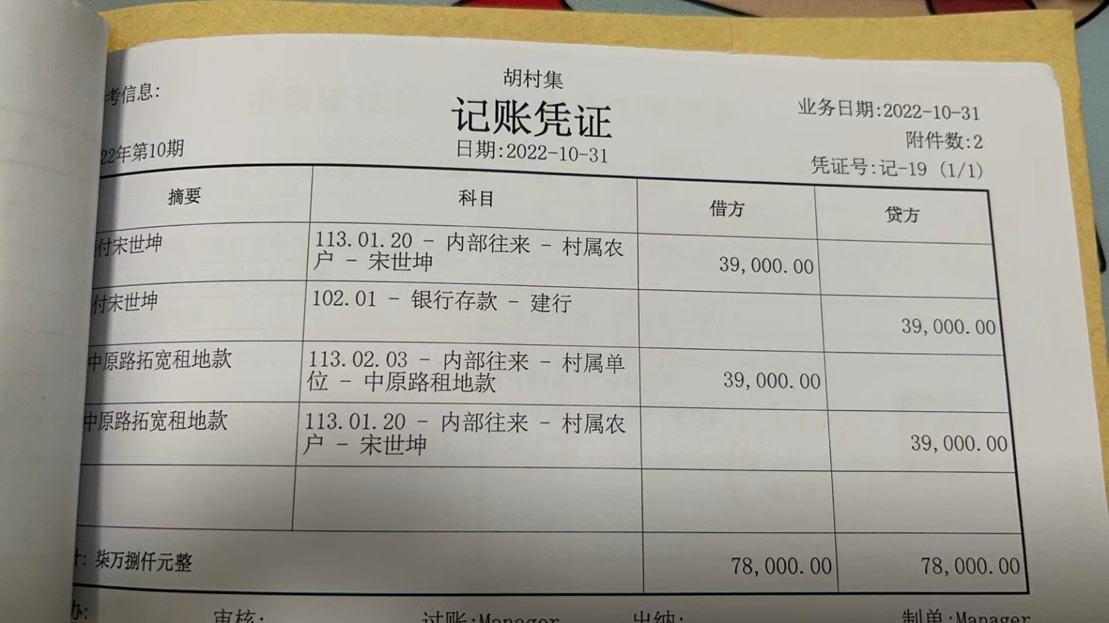 濮上办胡村集2022年10月份财务公开