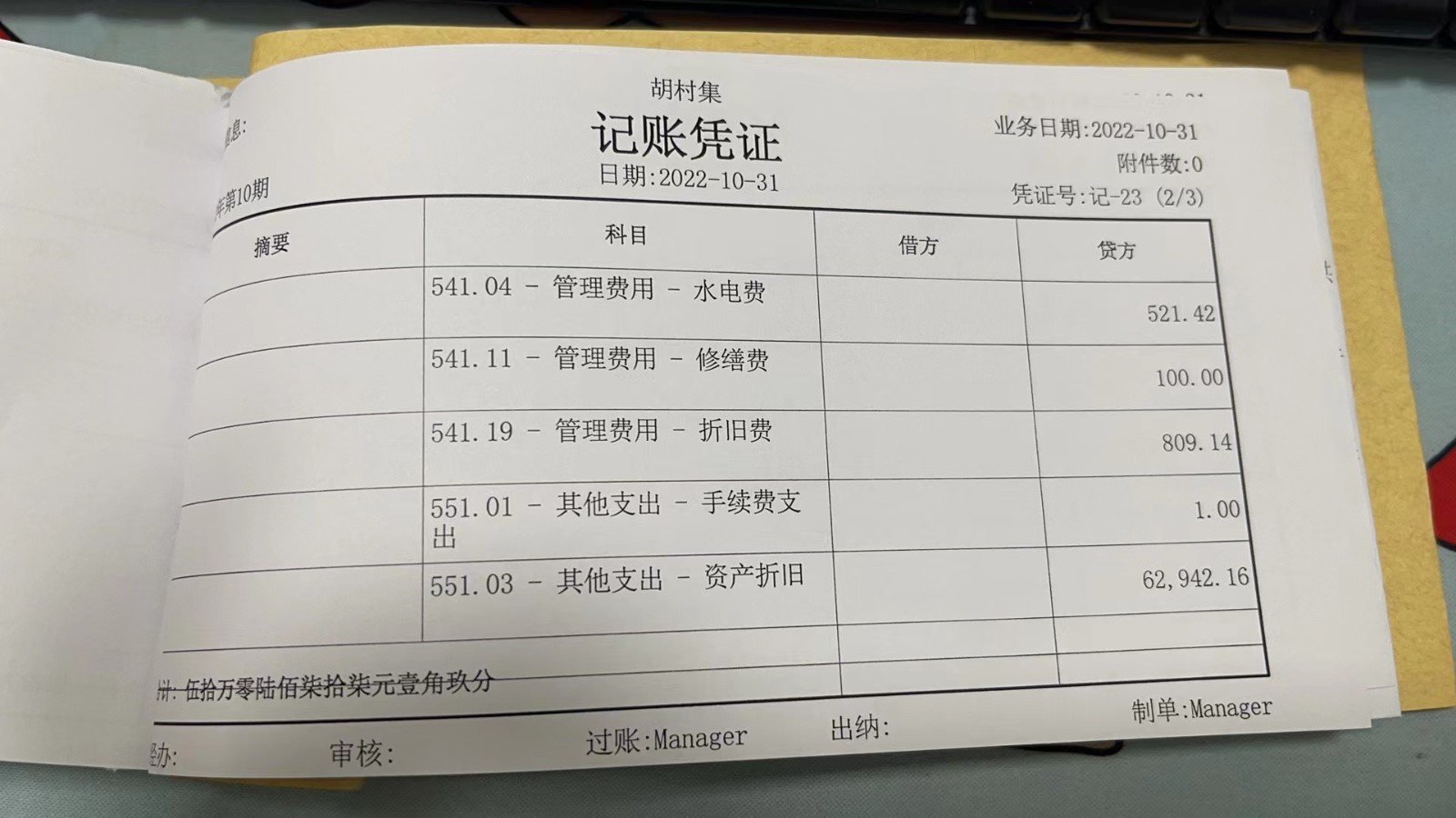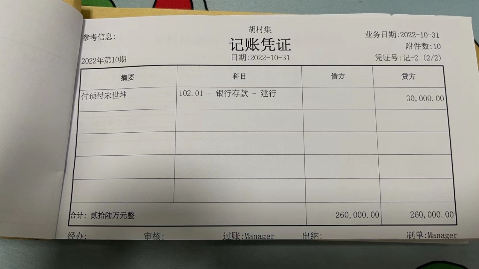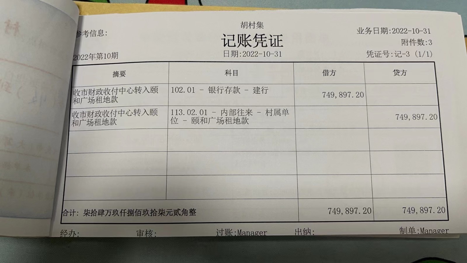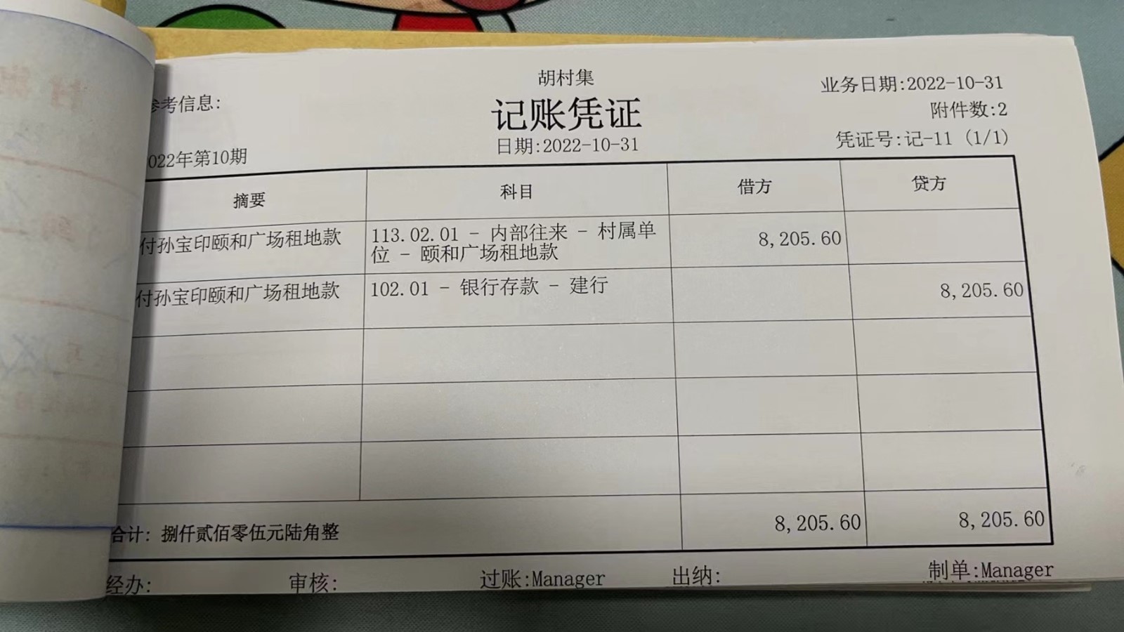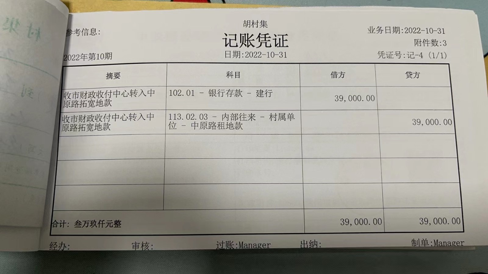 濮上办胡村集2022年10月份财务公开