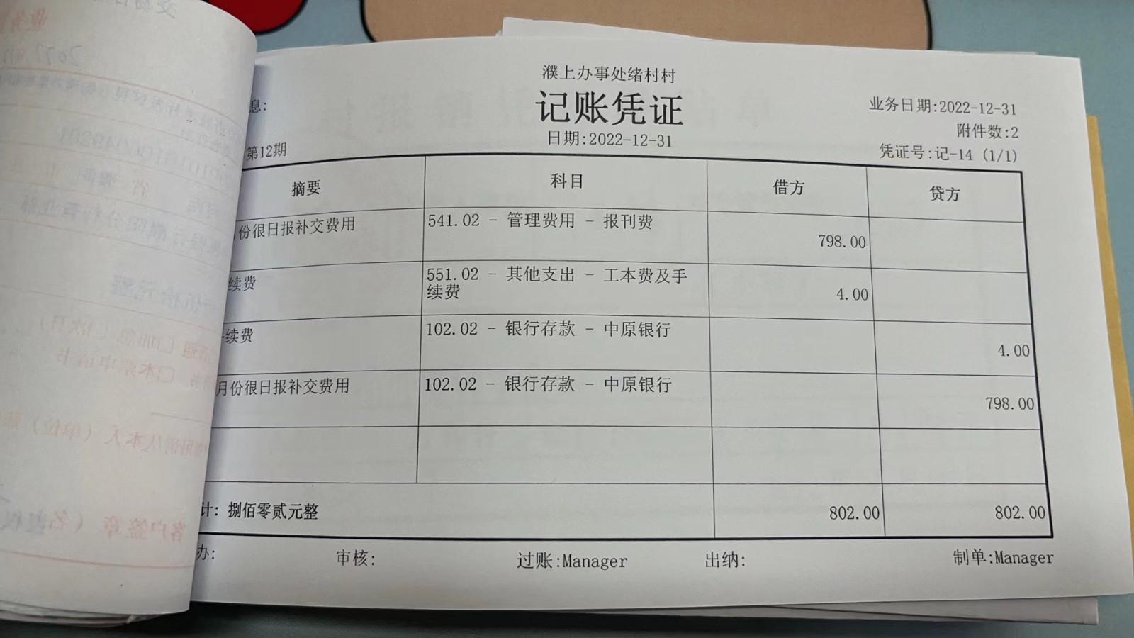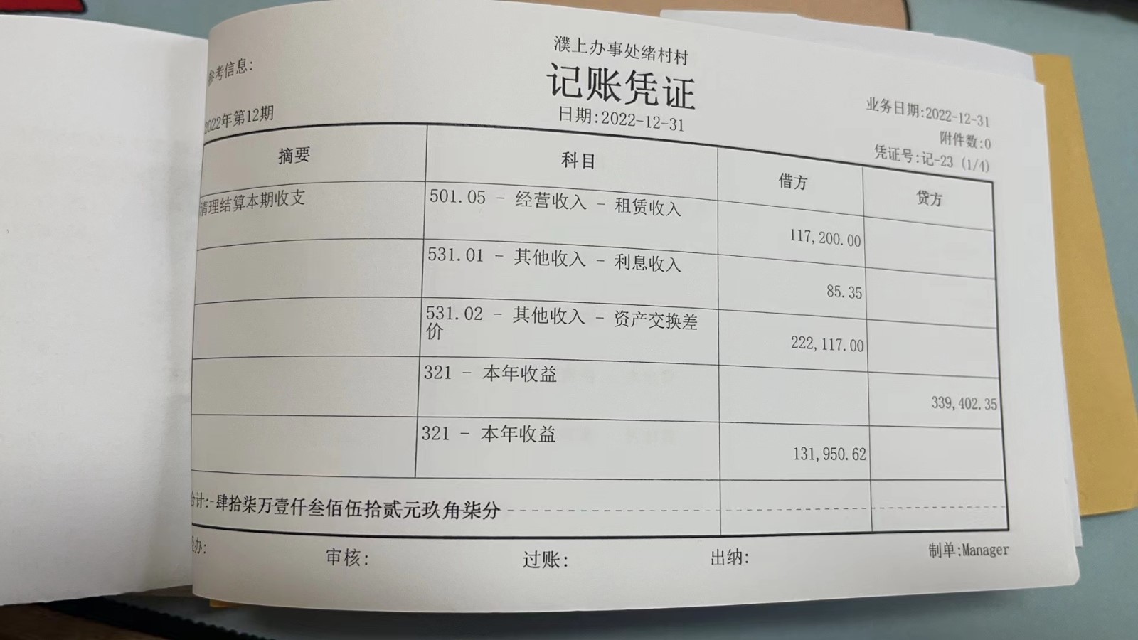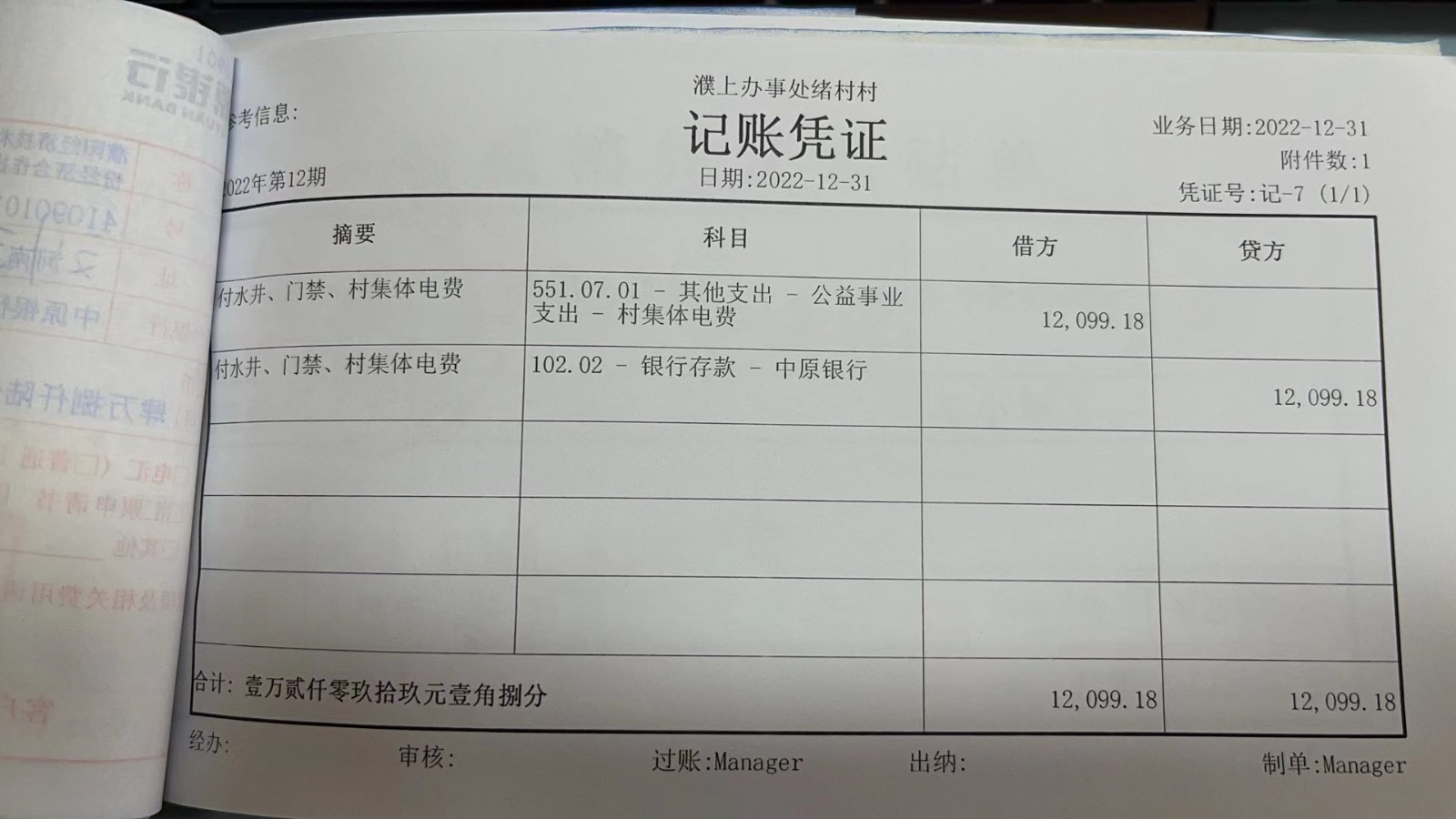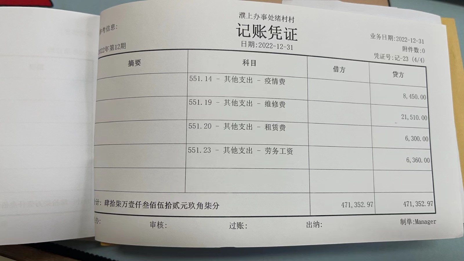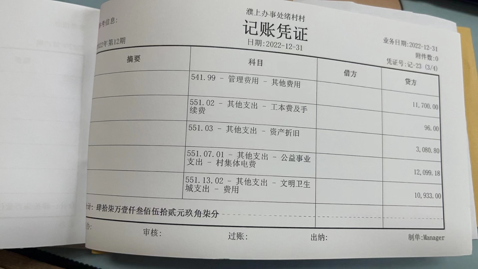 濮上办绪村2022年12月份财务公开