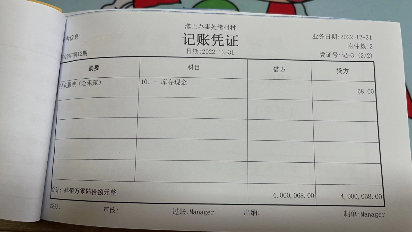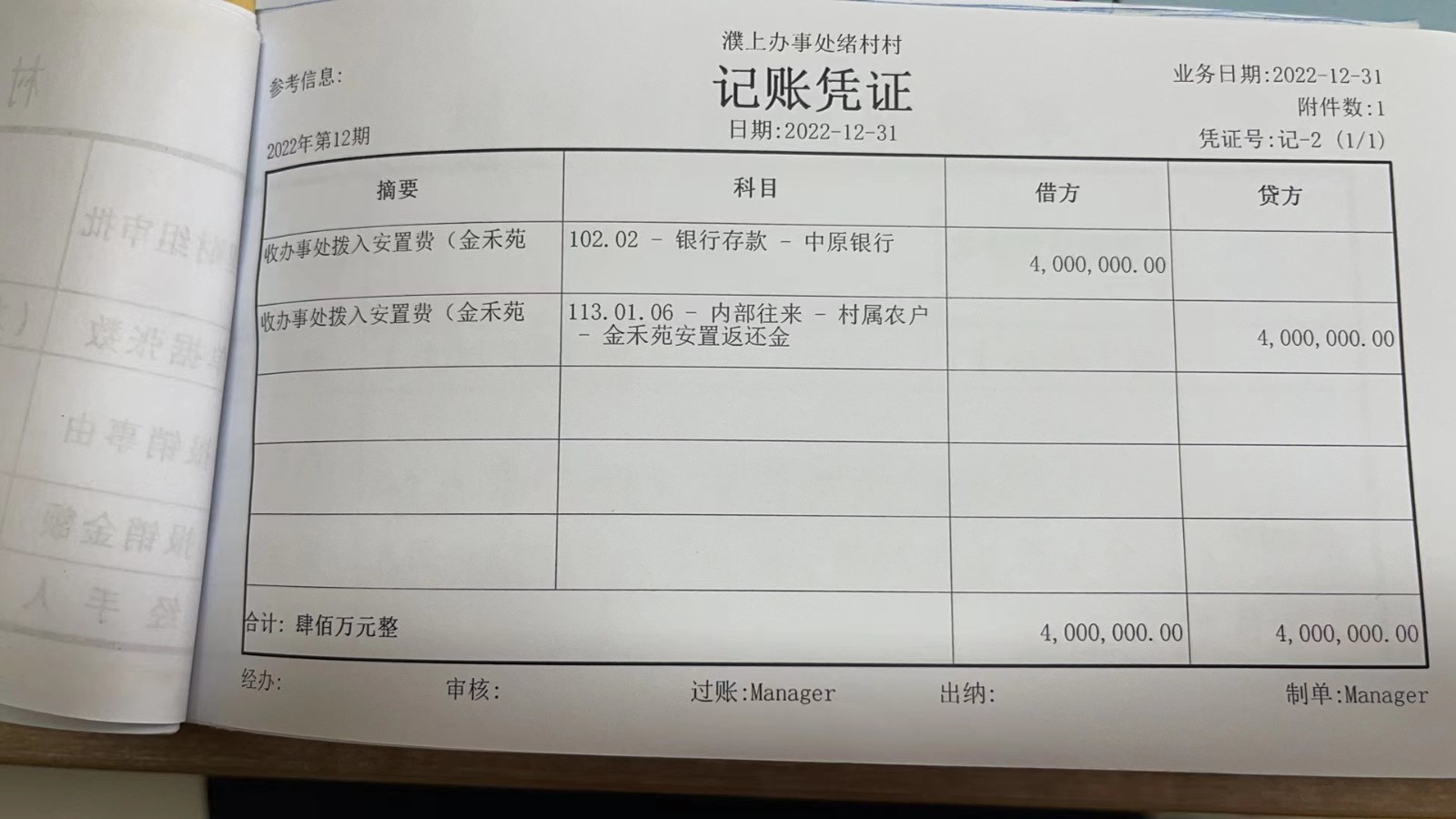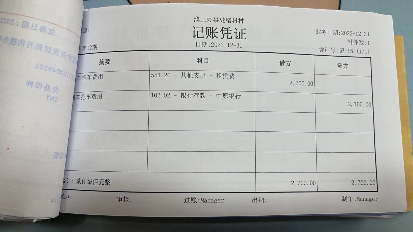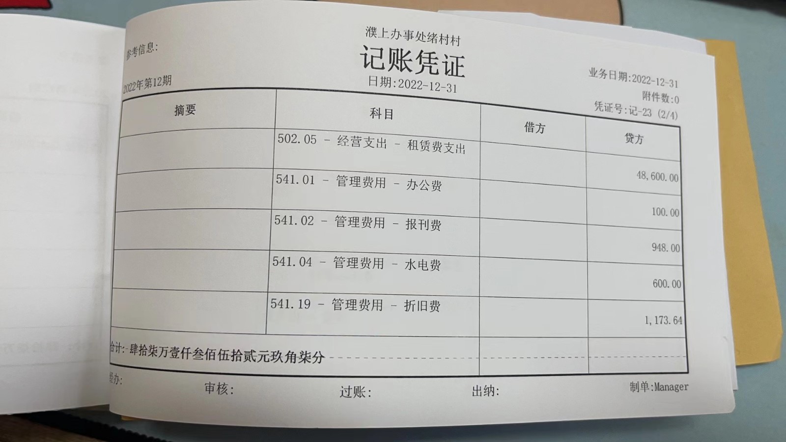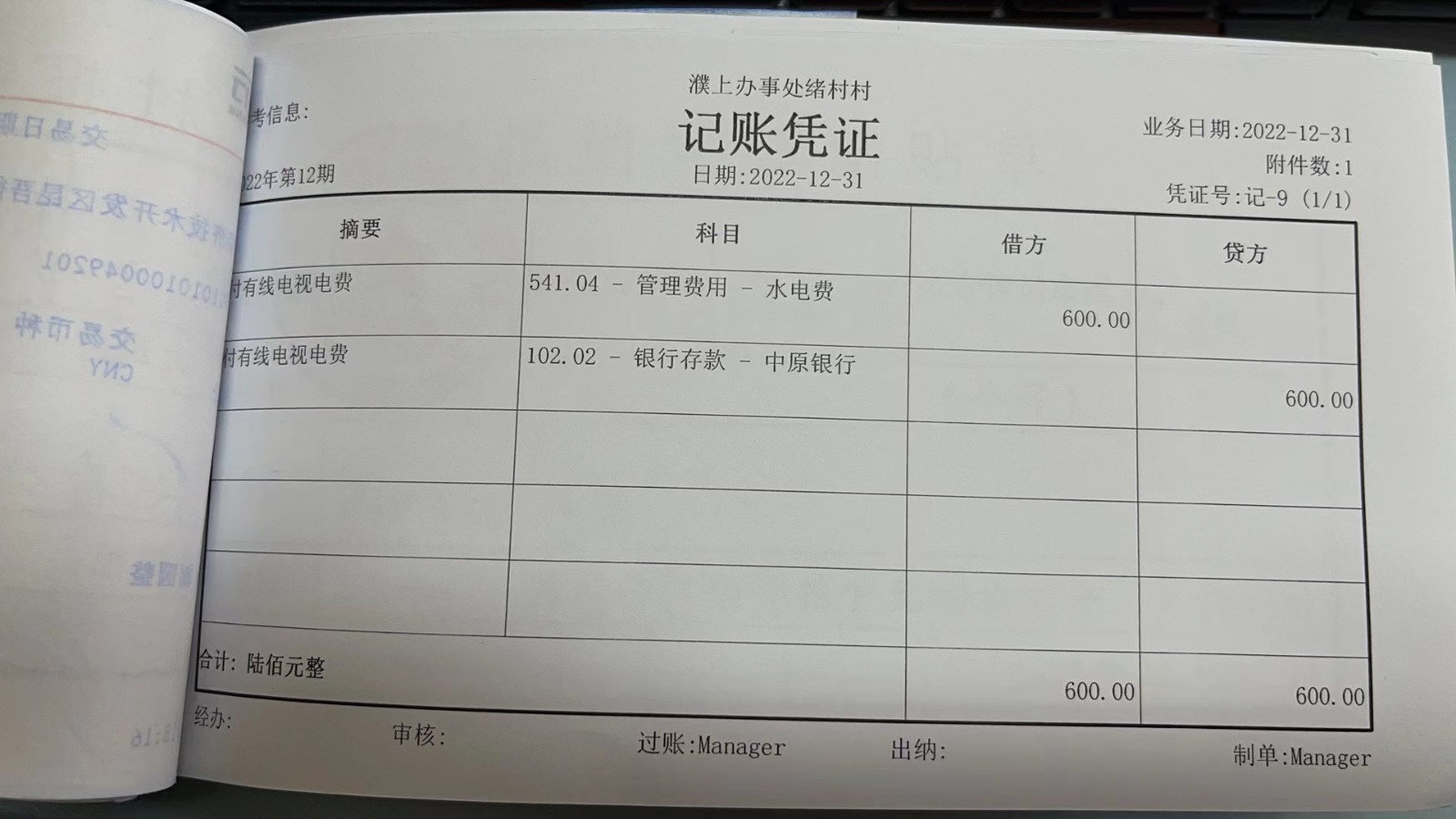 濮上办绪村2022年12月份财务公开
