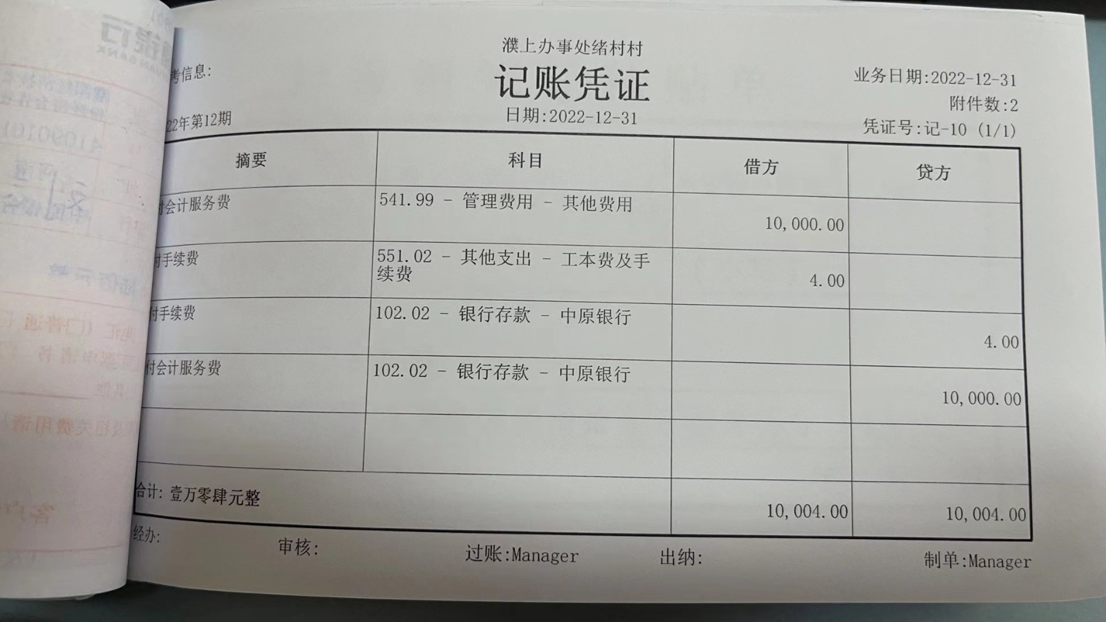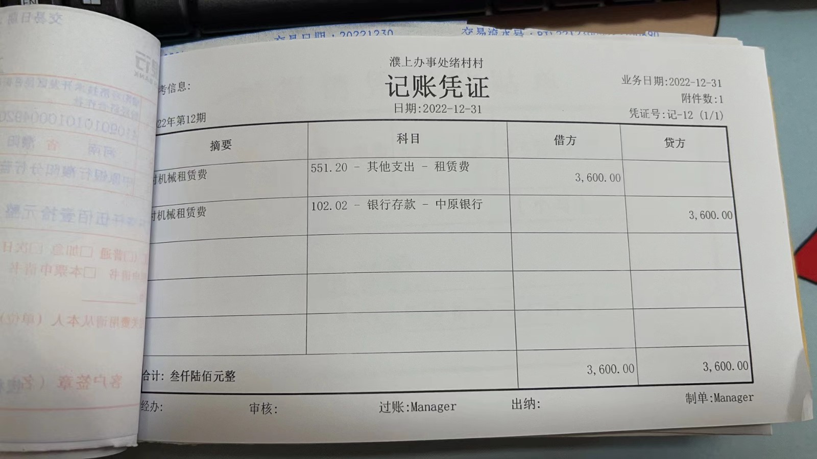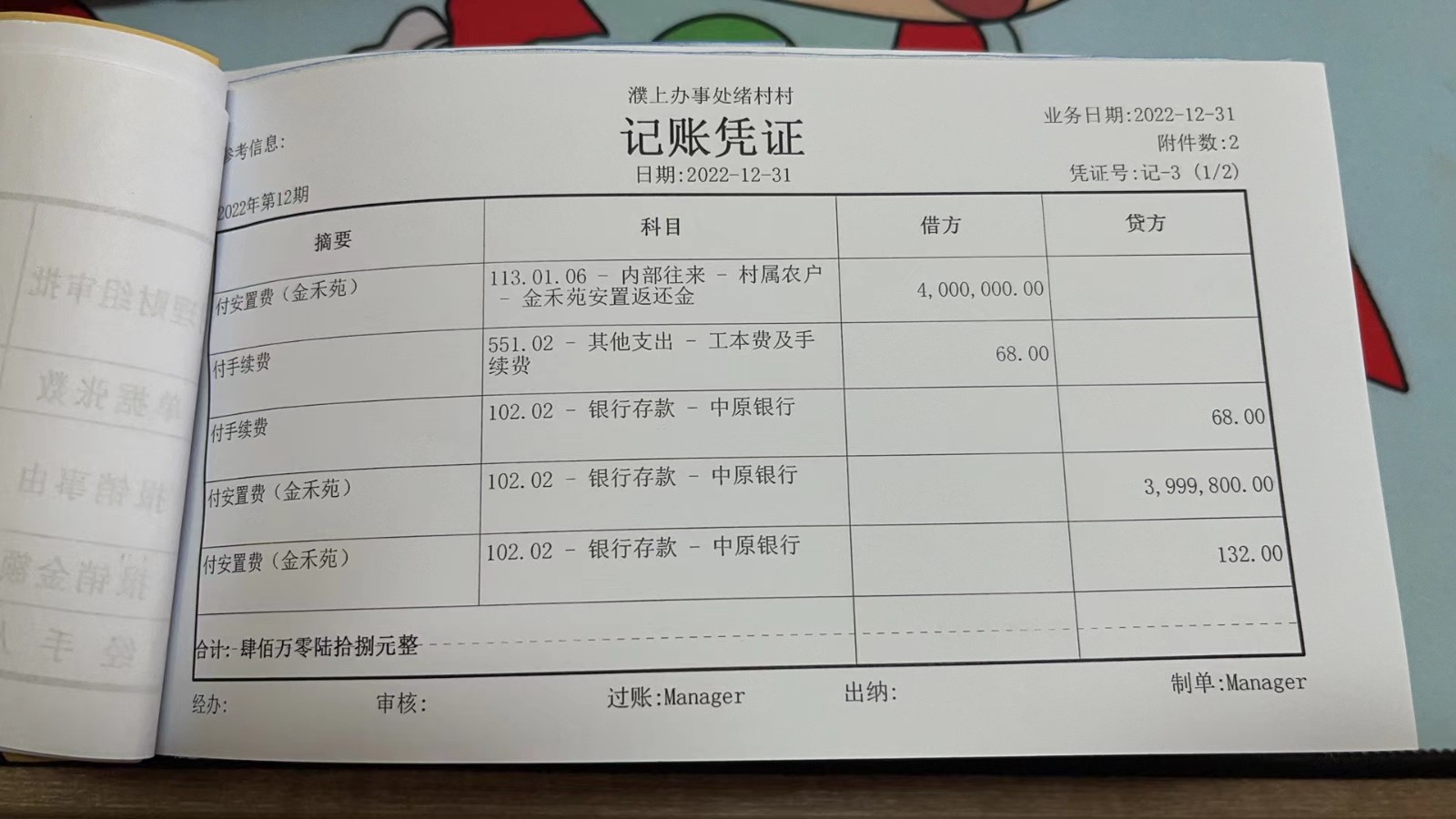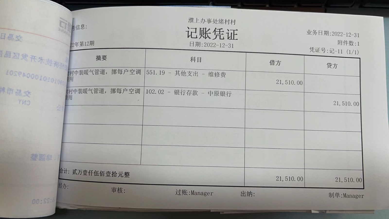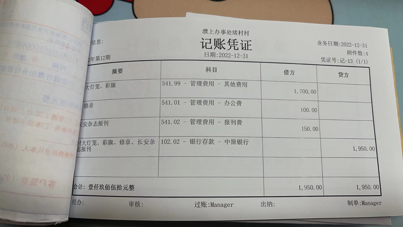 濮上办绪村2022年12月份财务公开