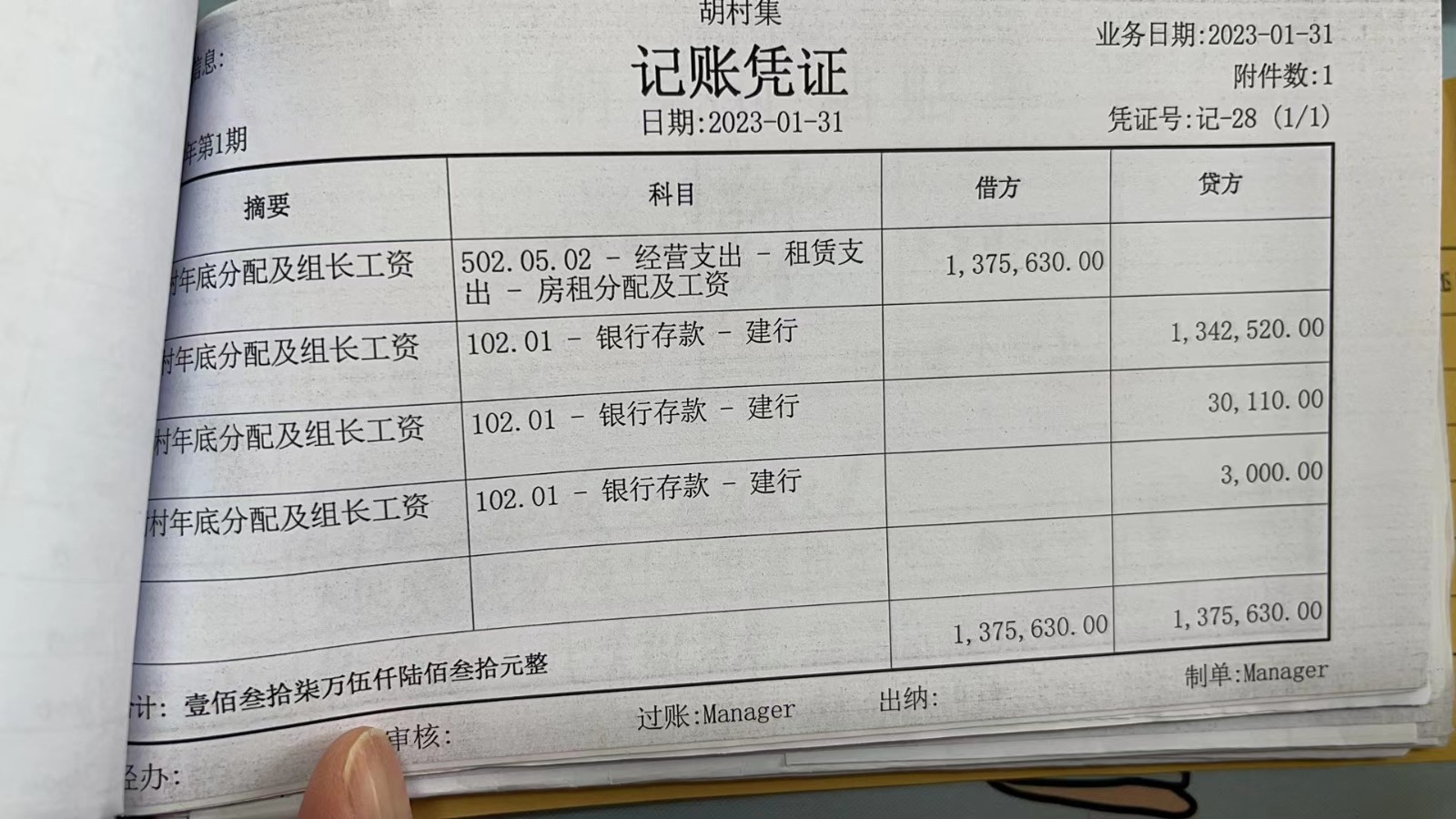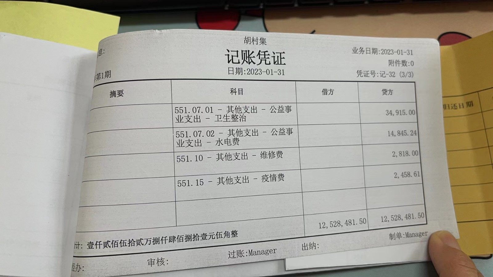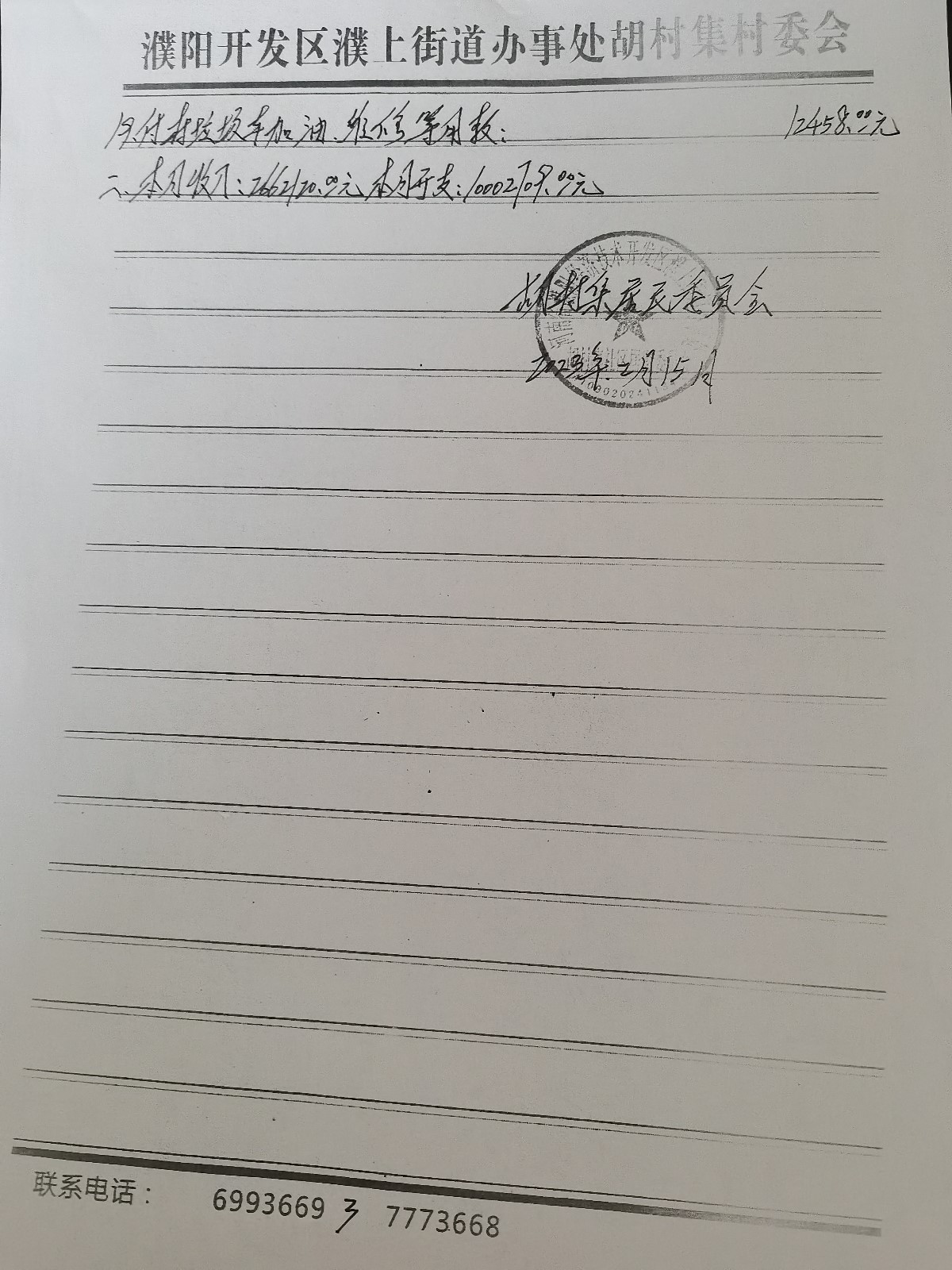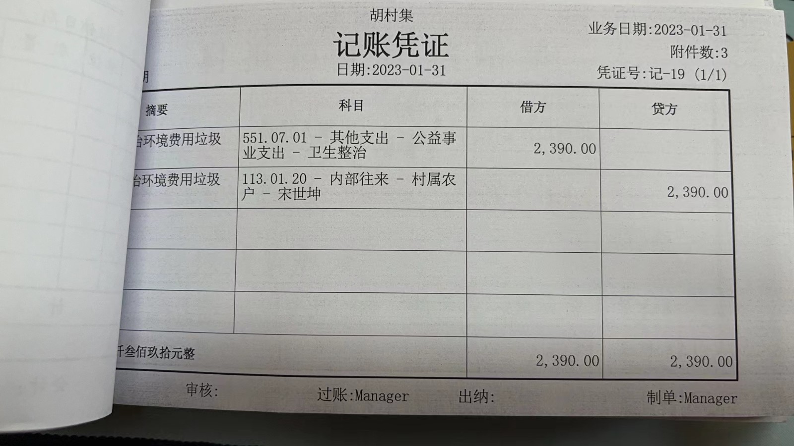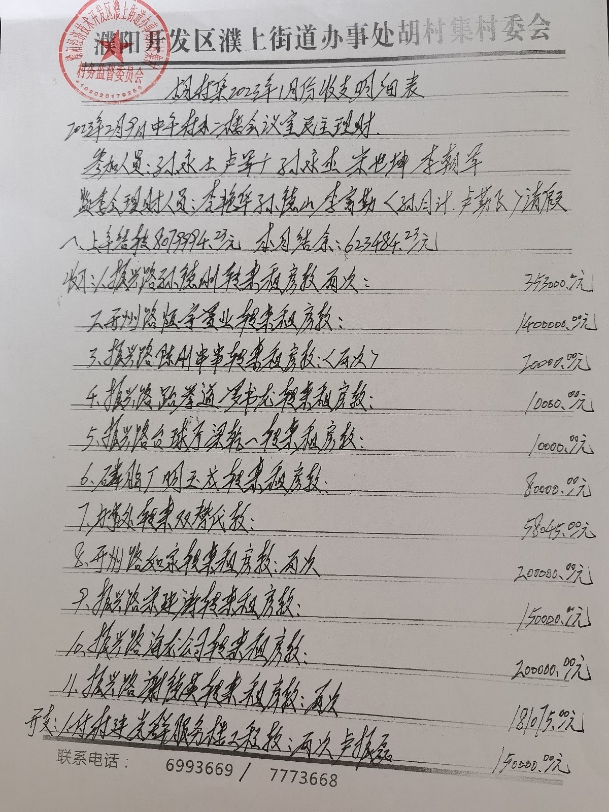 濮上办胡村集2023年1月份财务公开