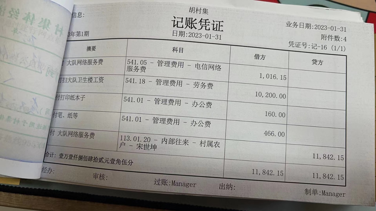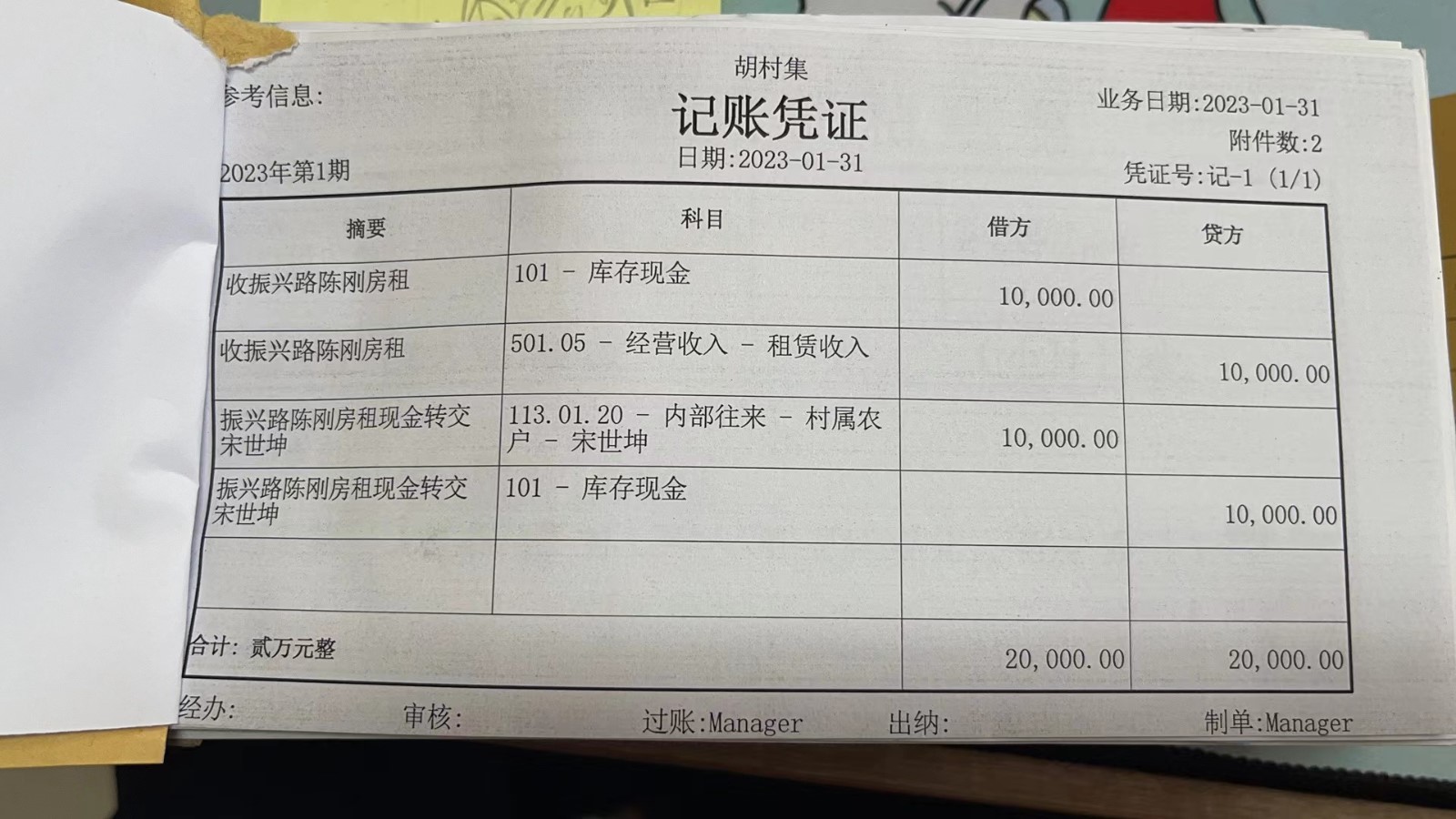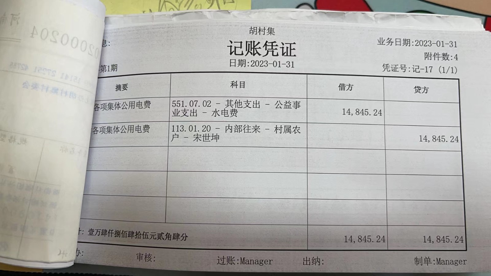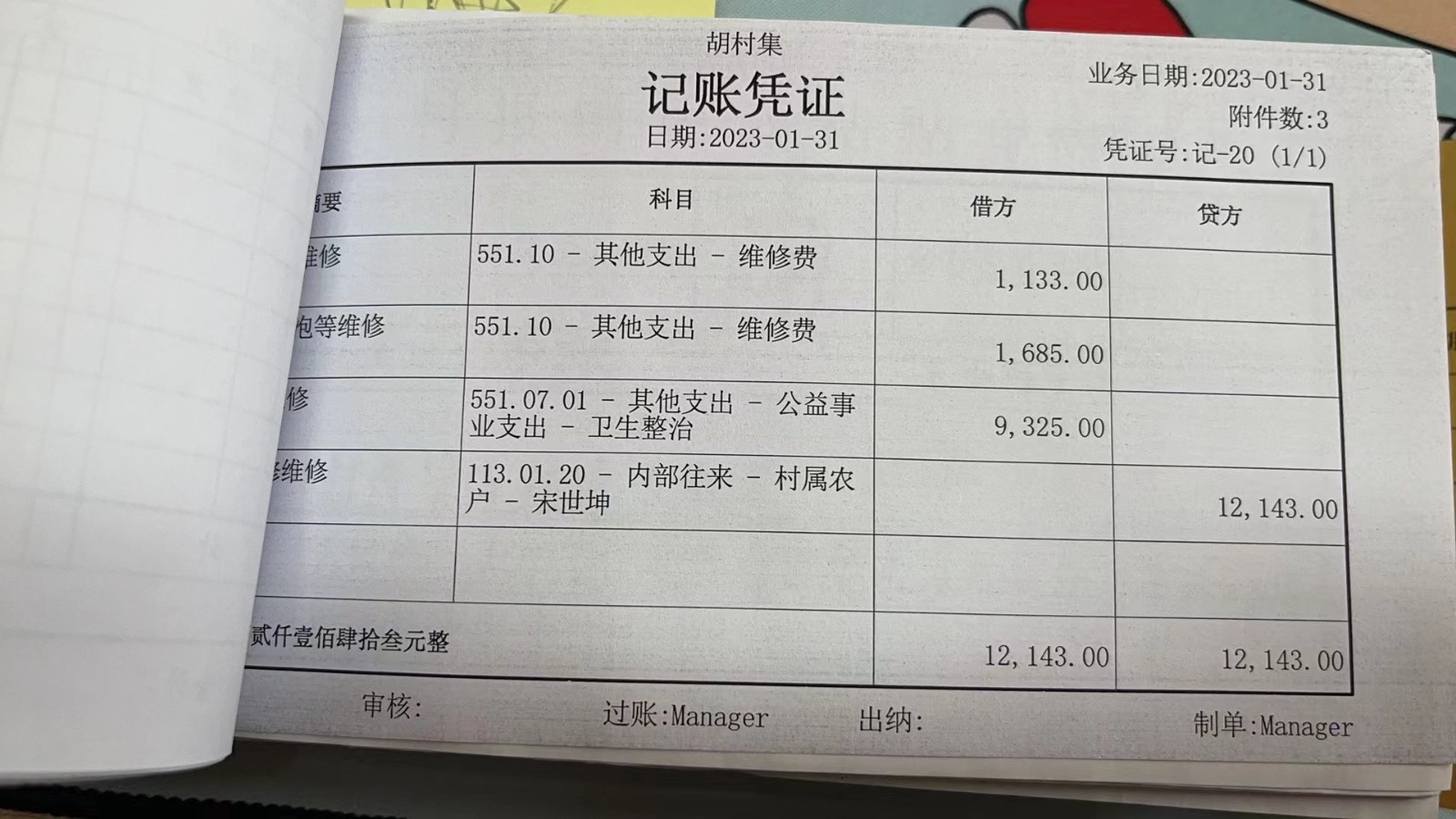 濮上办胡村集2023年1月份财务公开