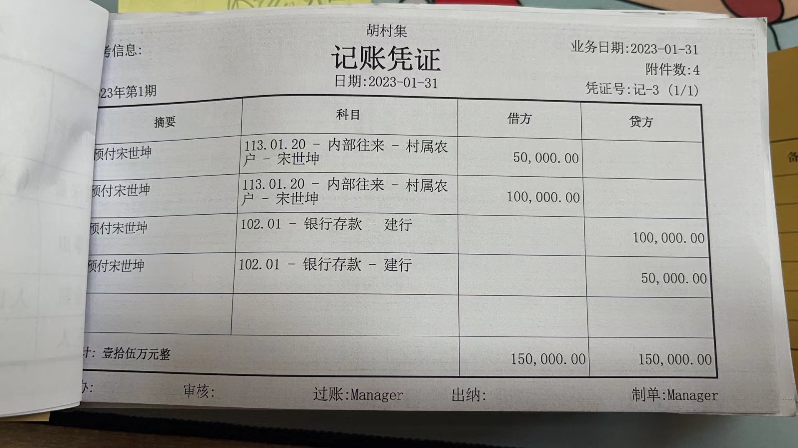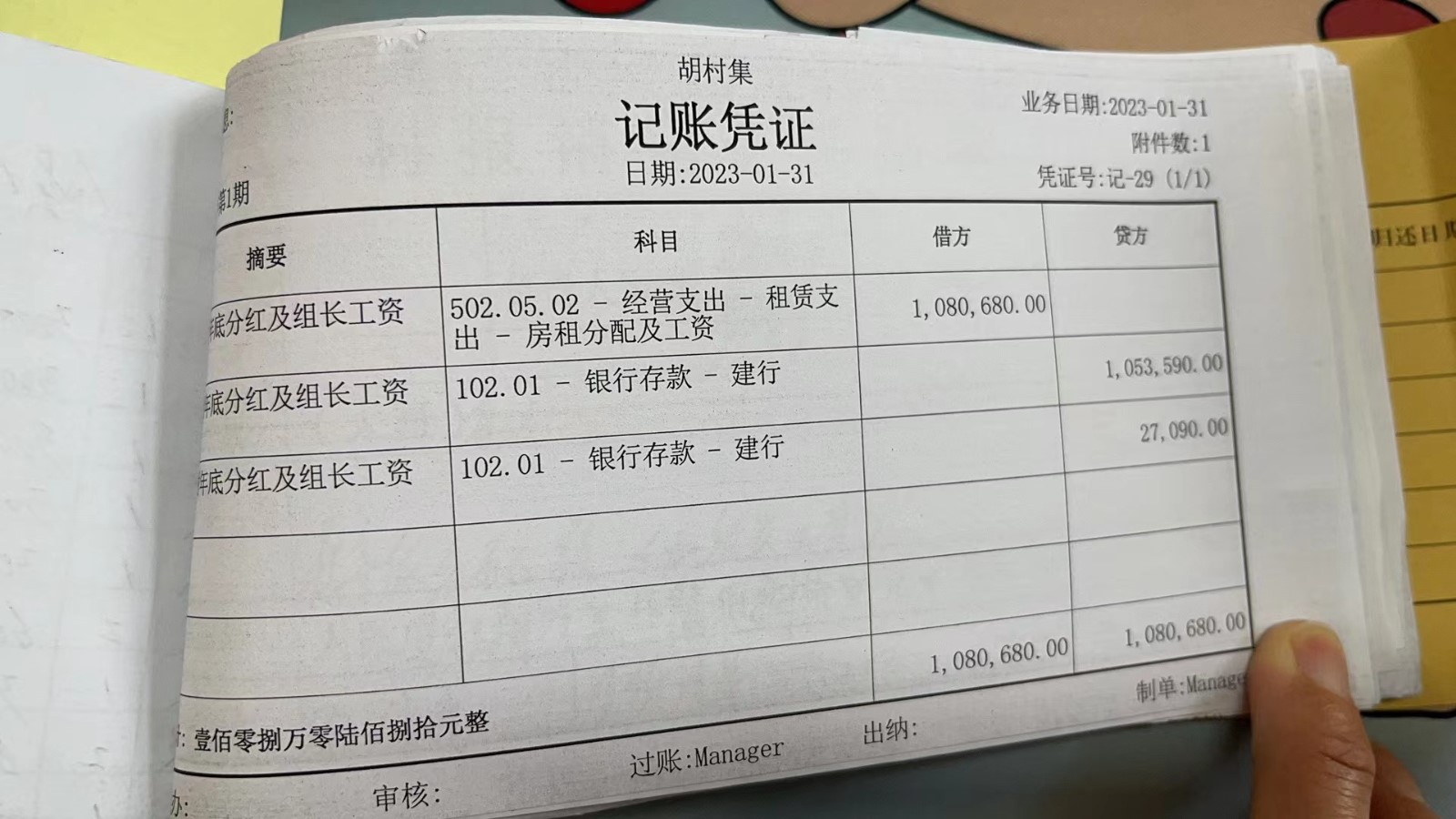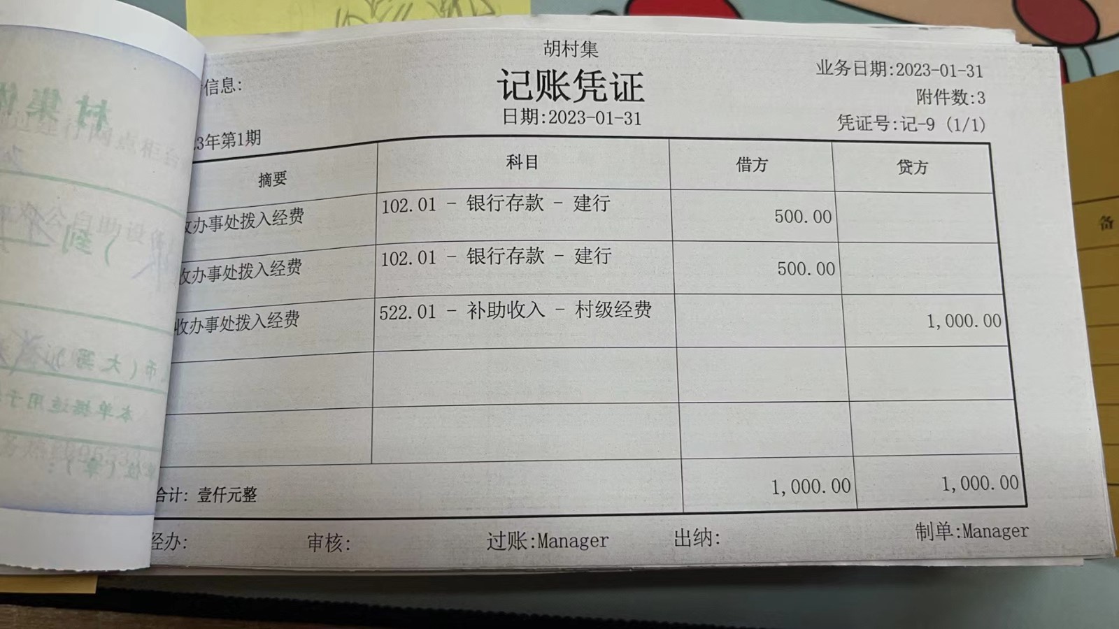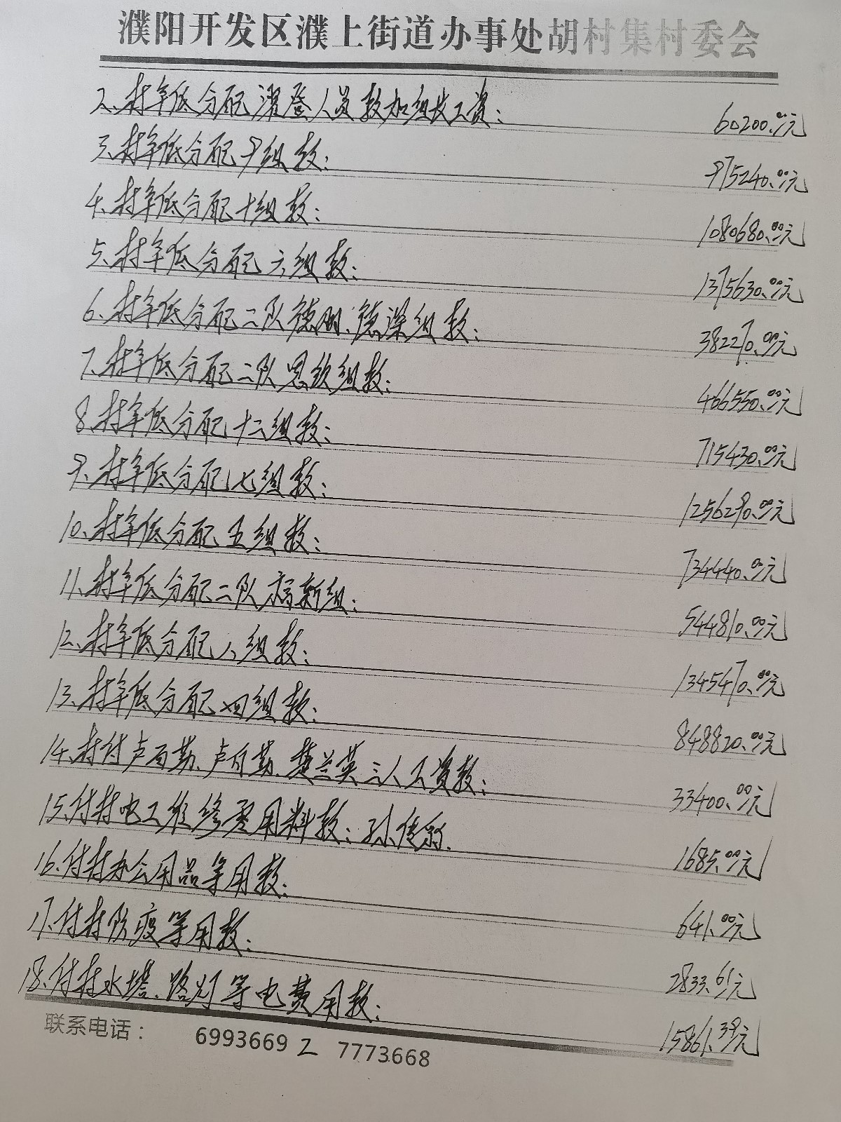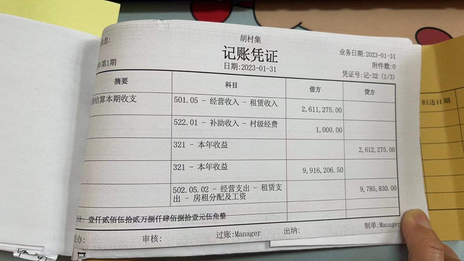 濮上办胡村集2023年1月份财务公开