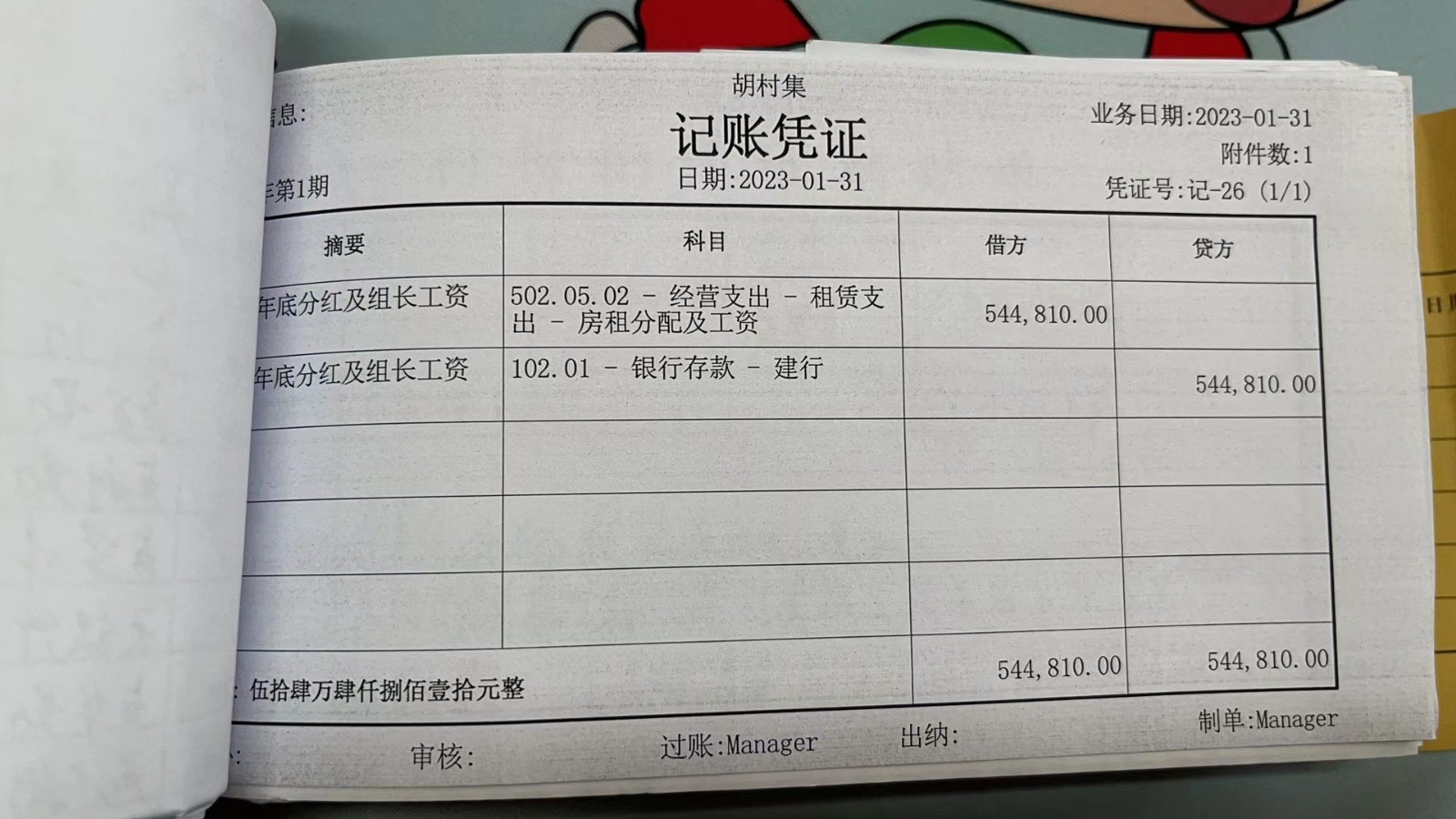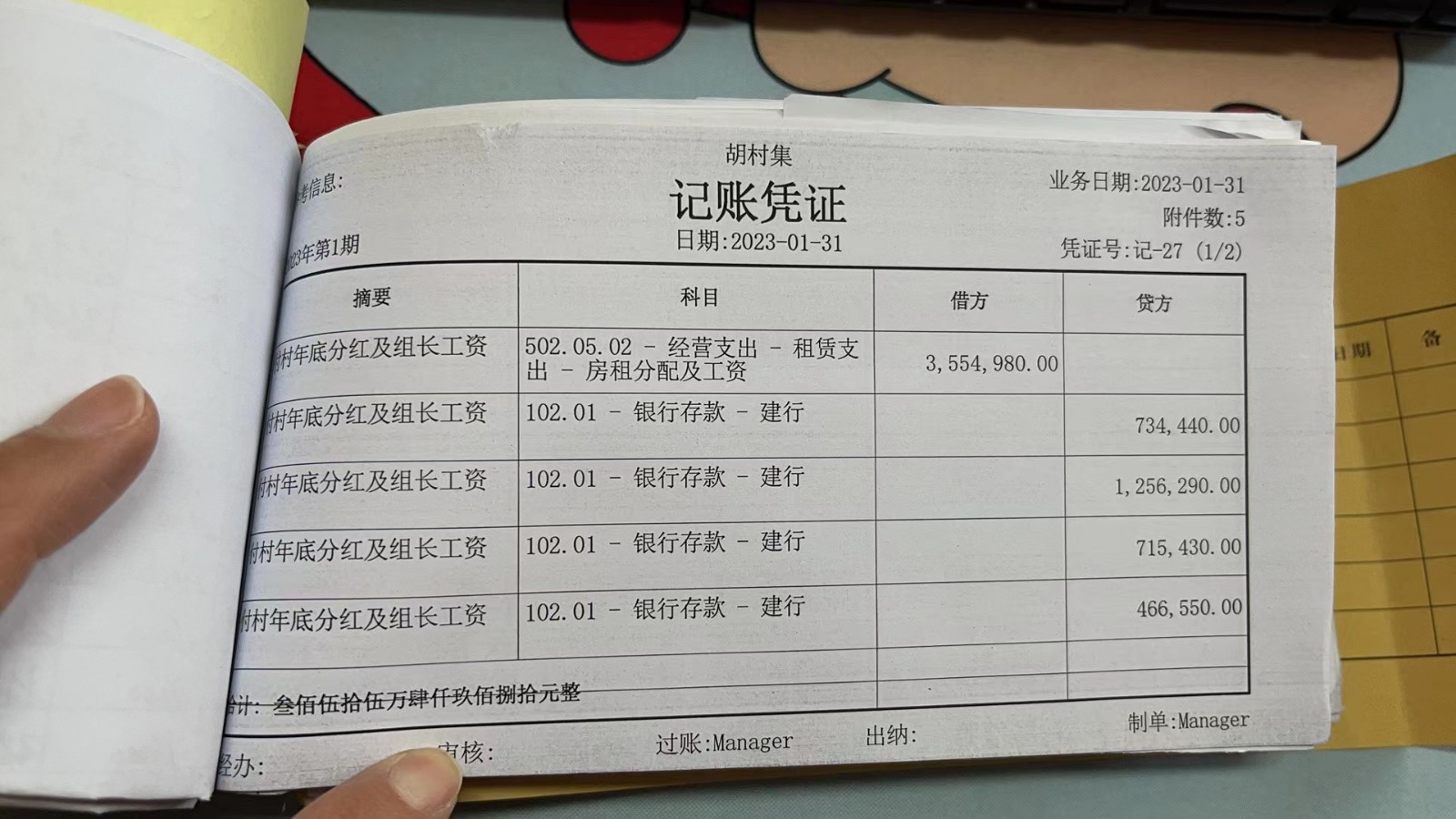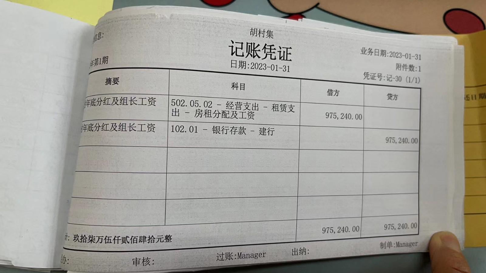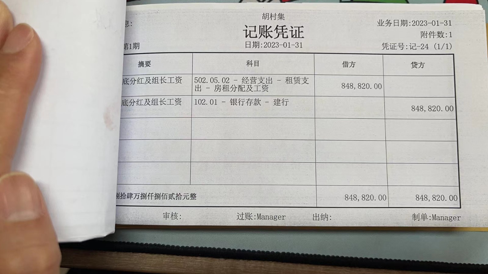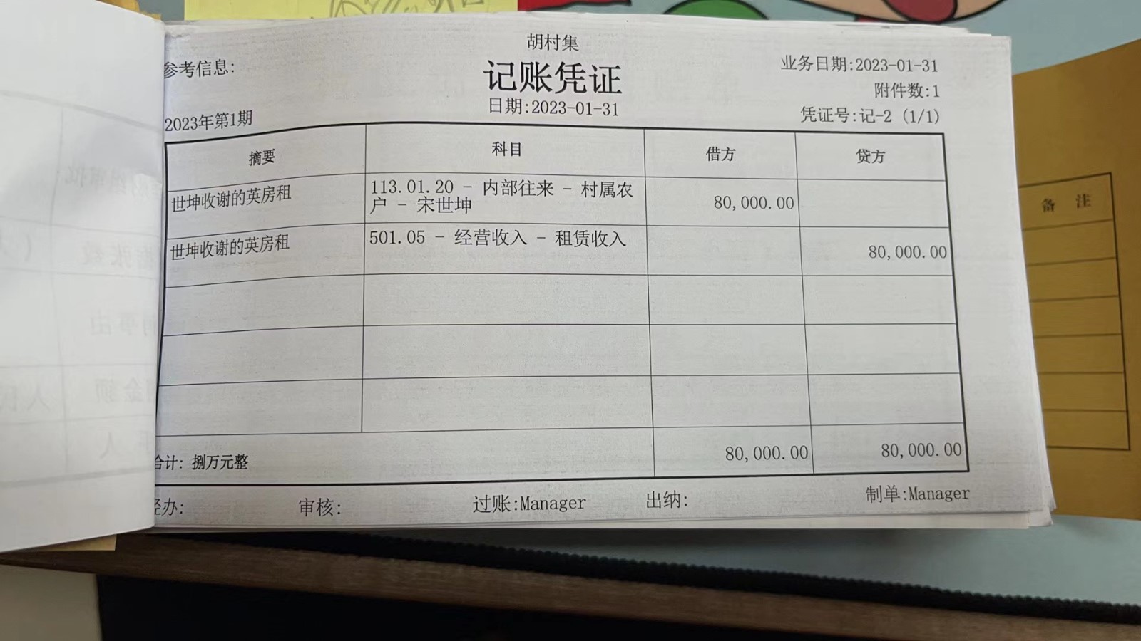濮上办胡村集2023年1月份财务公开