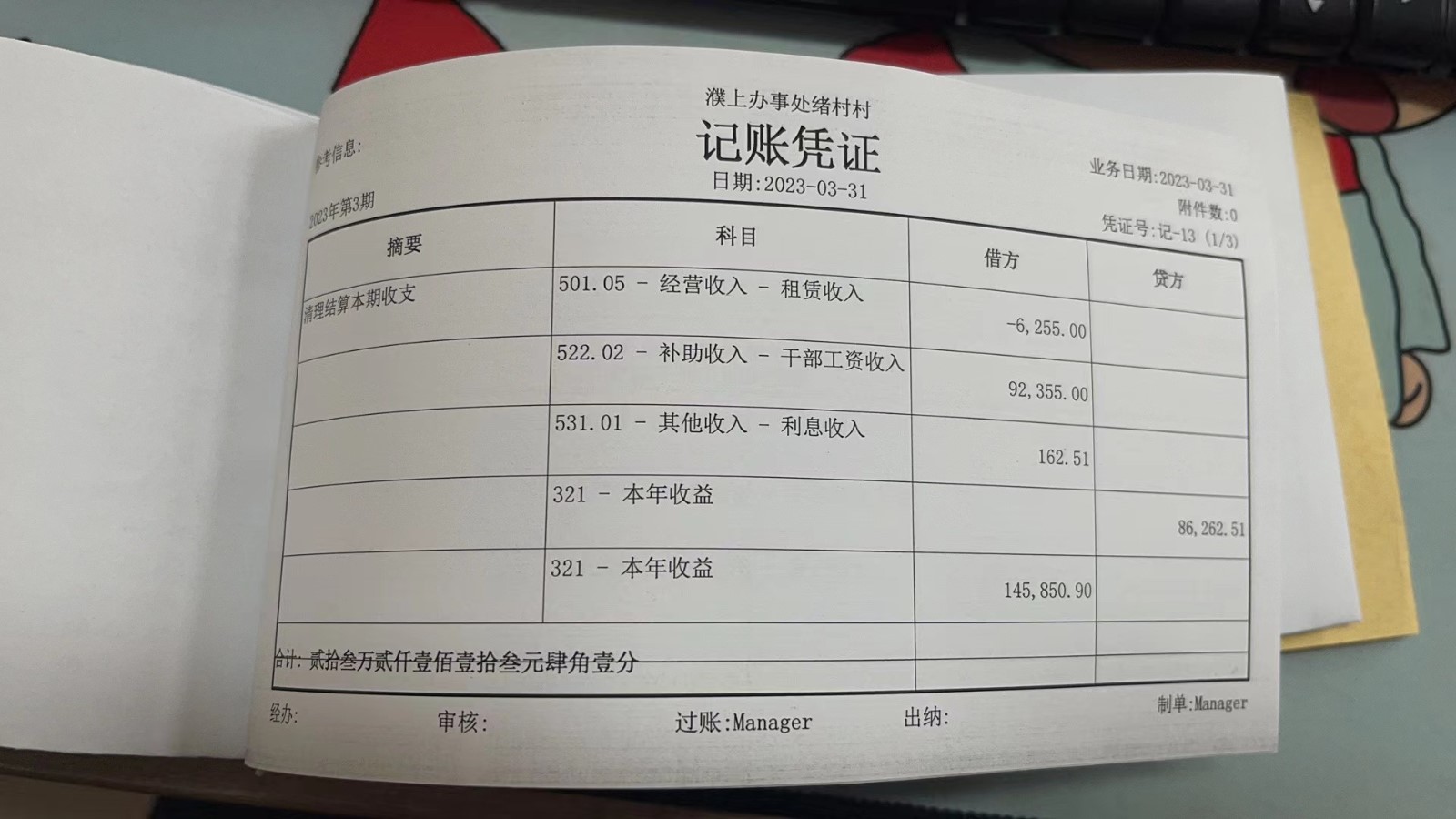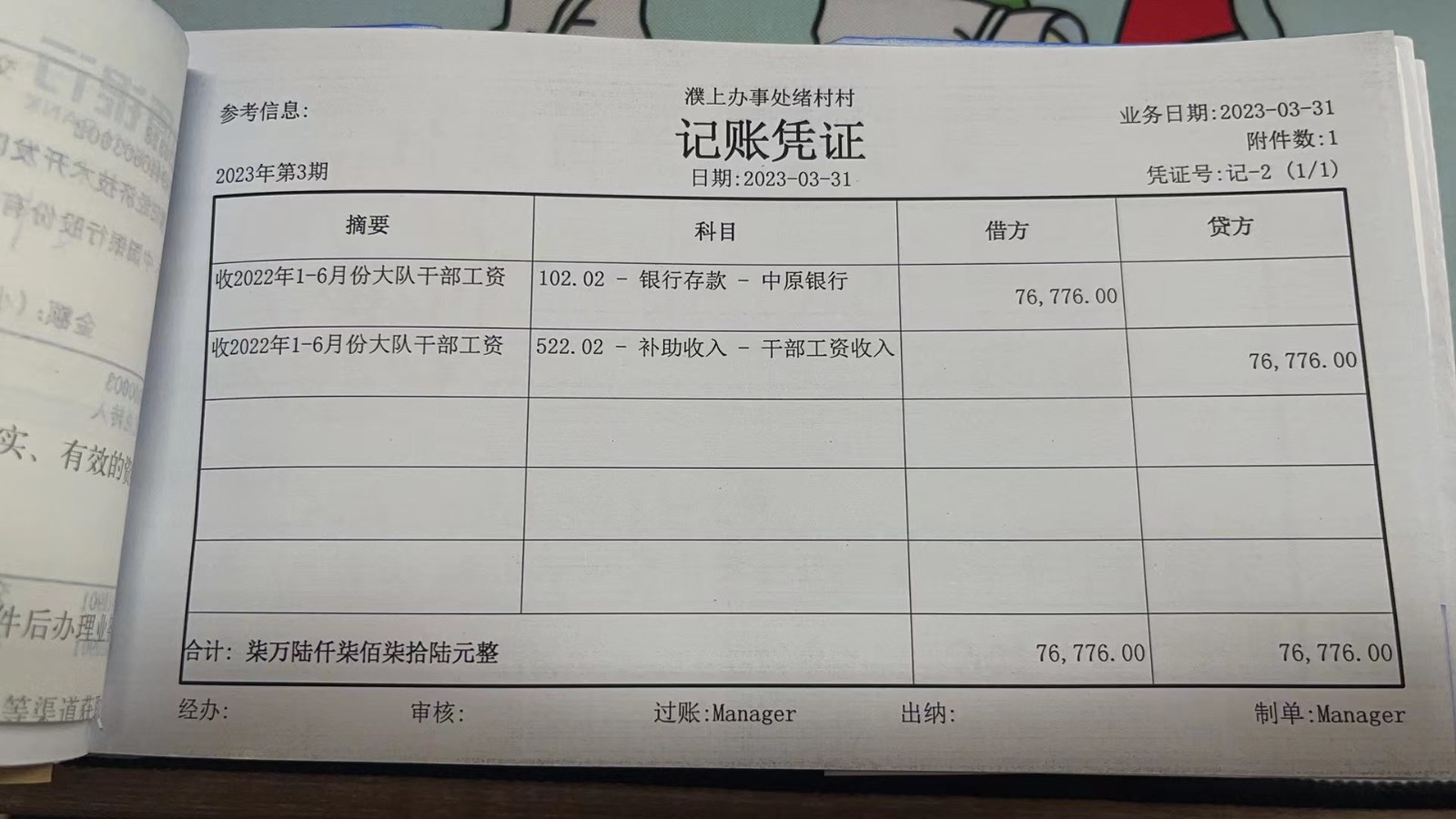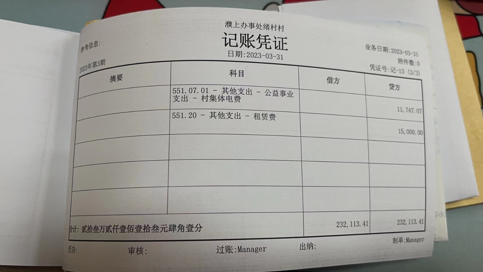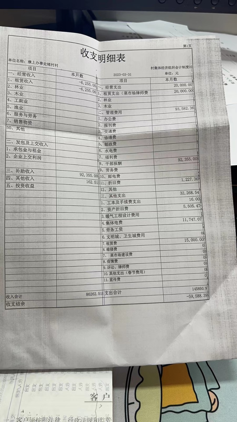 濮上办绪村2023年3月份财务公开