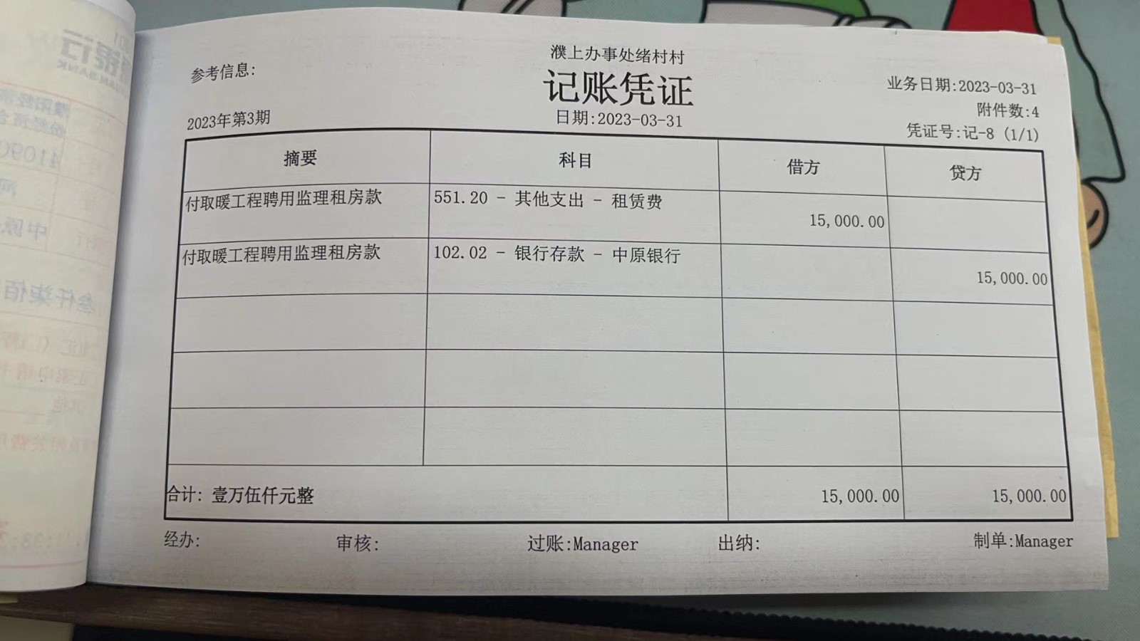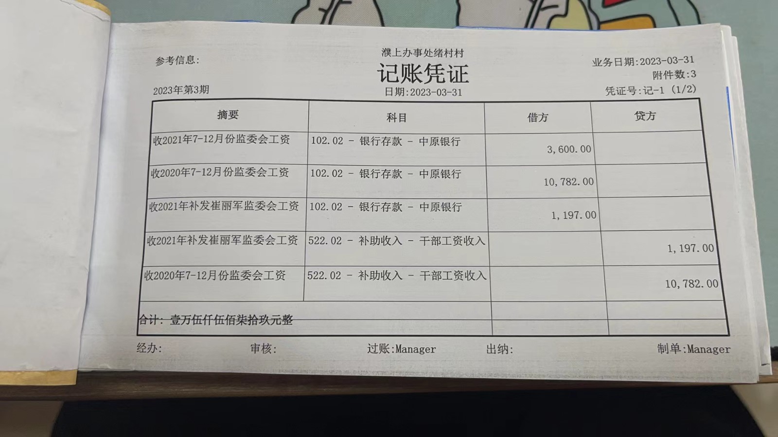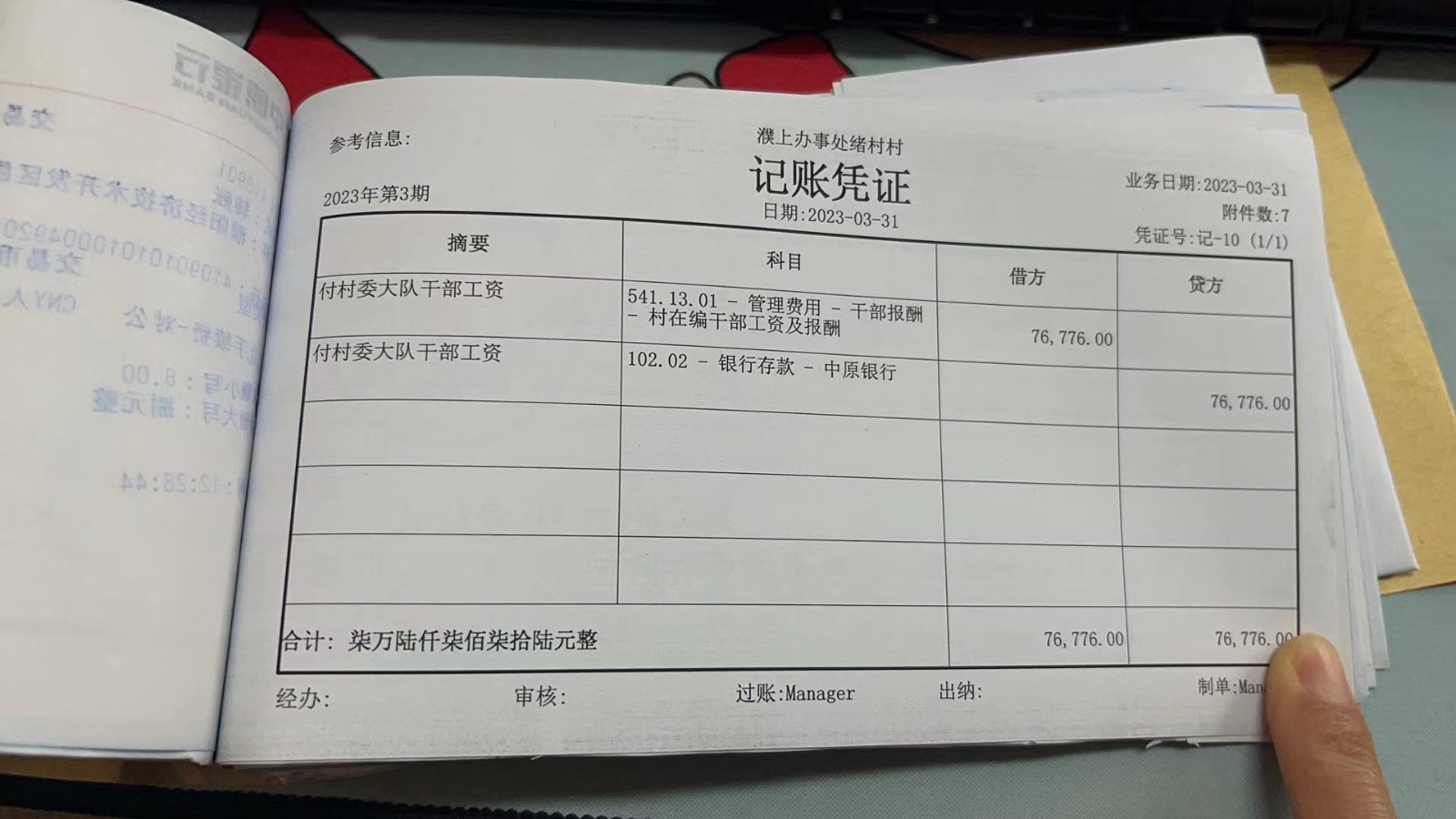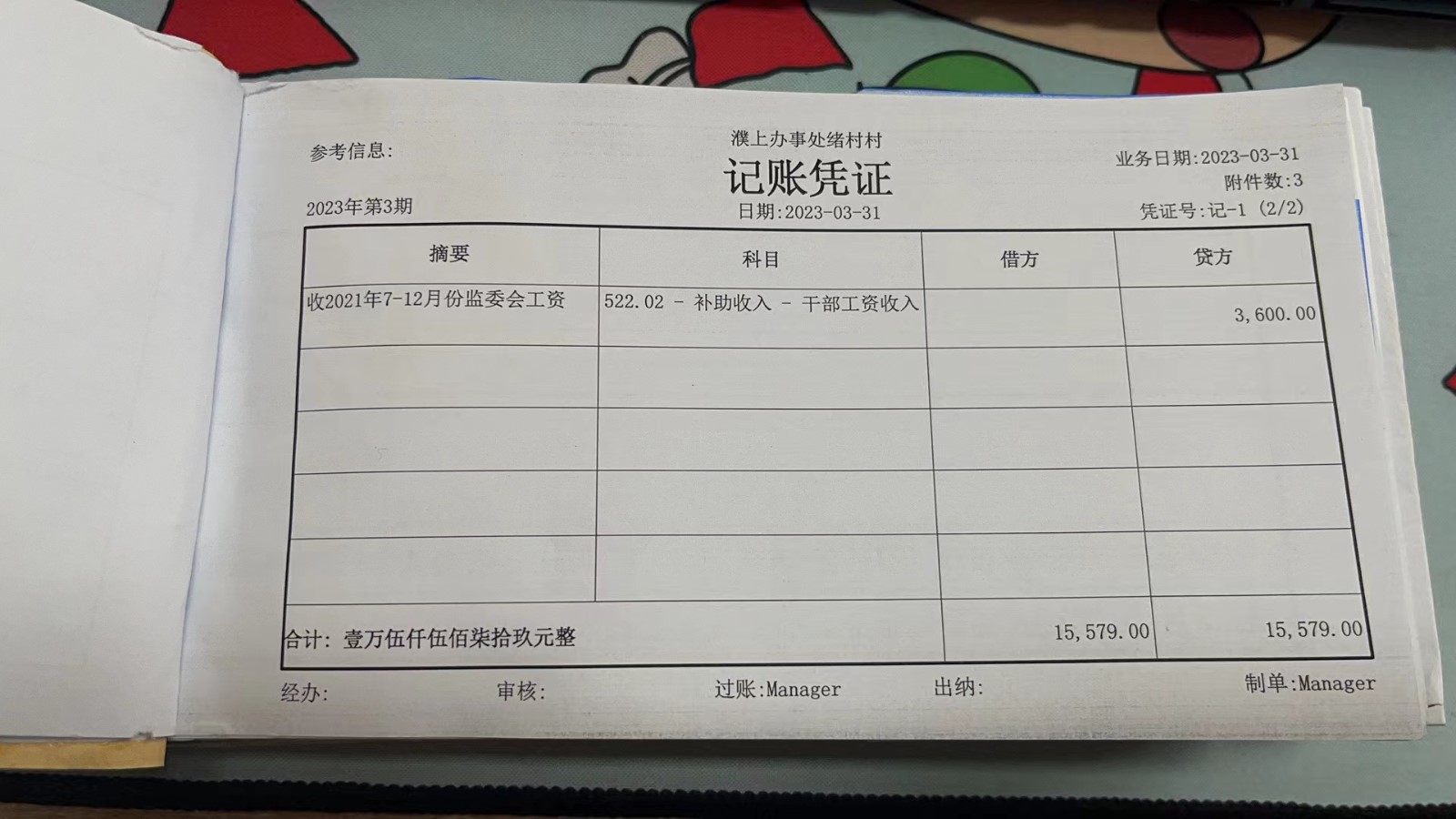 濮上办绪村2023年3月份财务公开