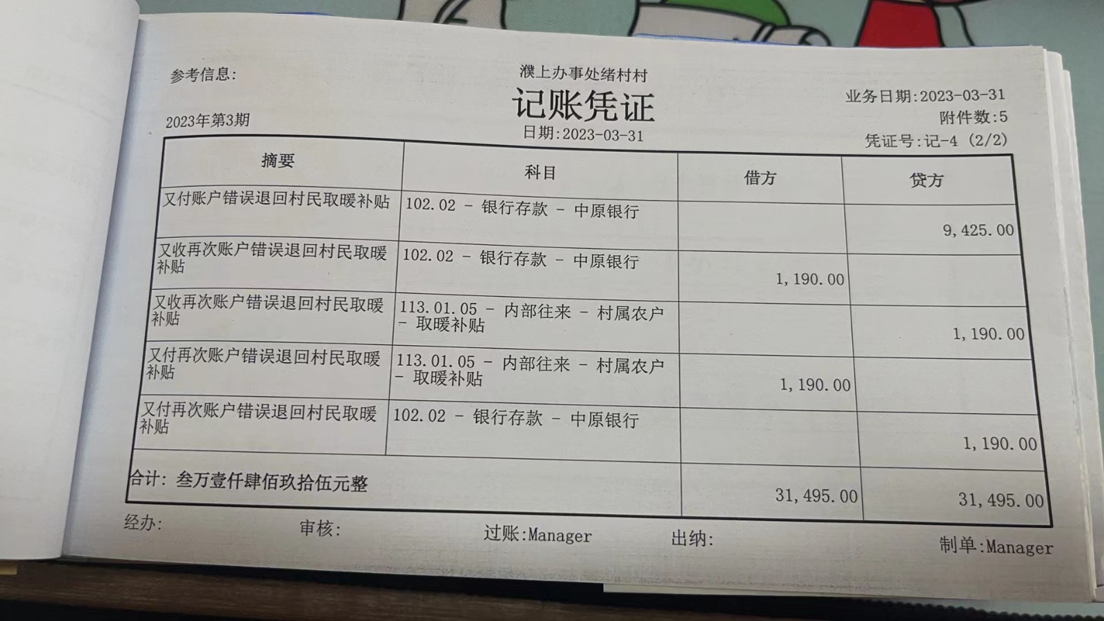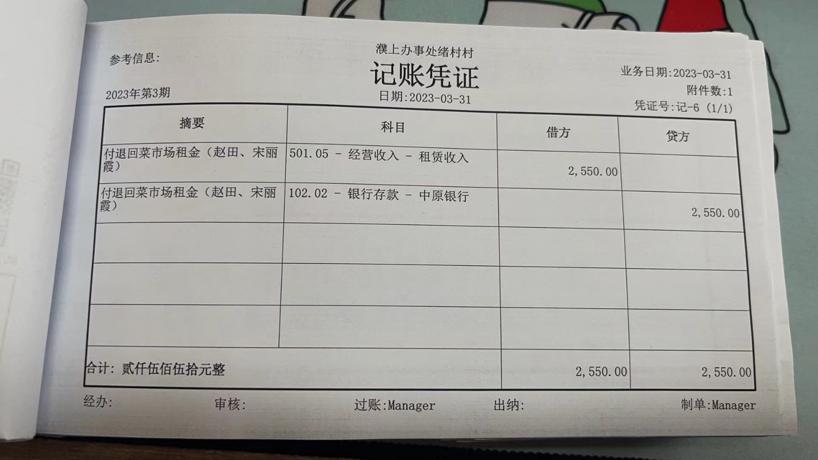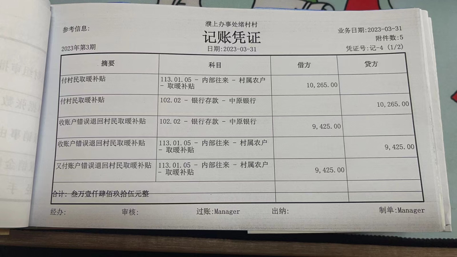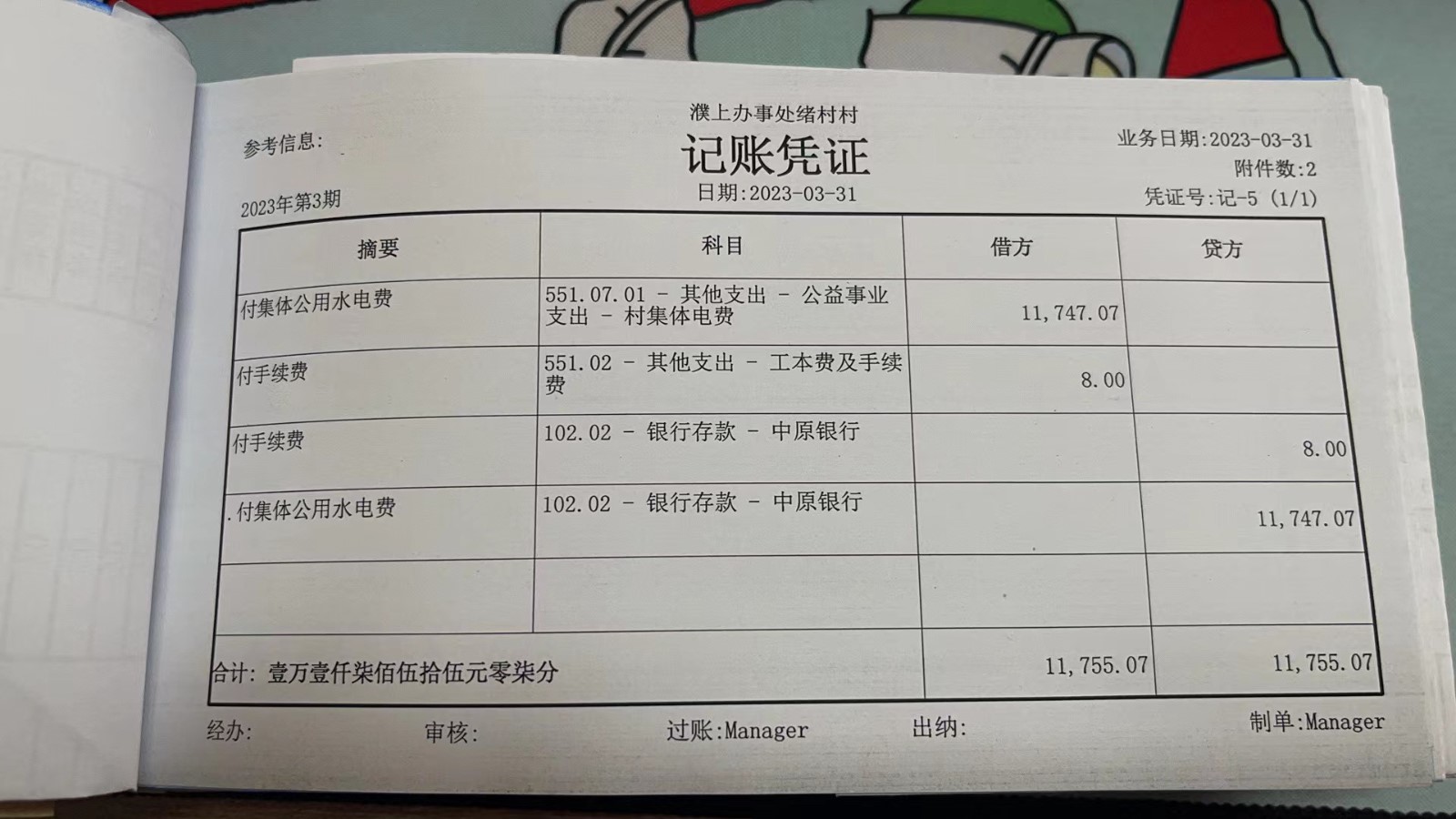 濮上办绪村2023年3月份财务公开