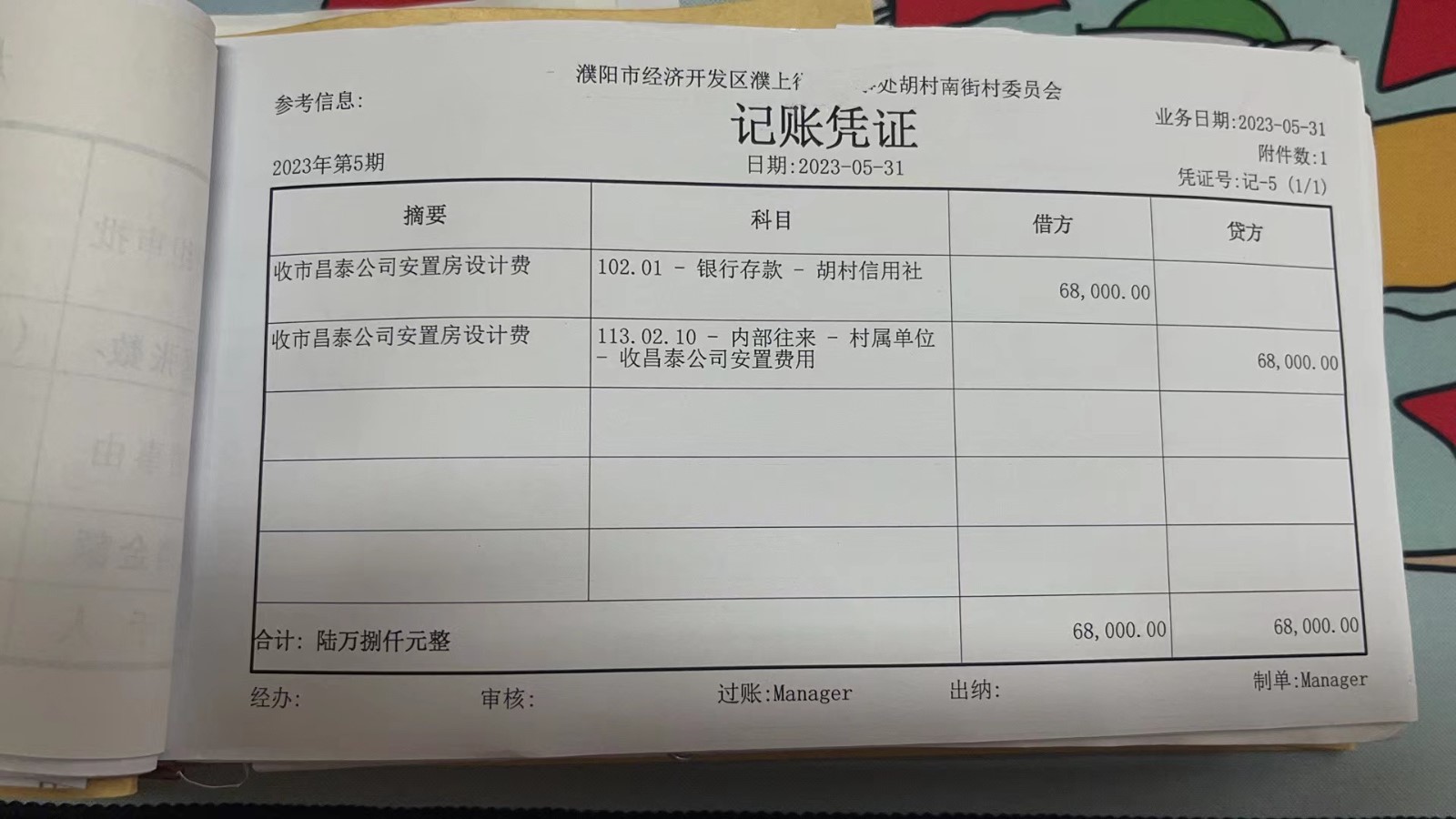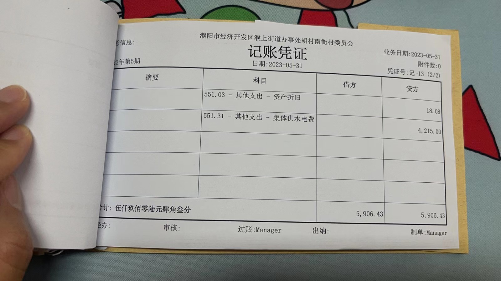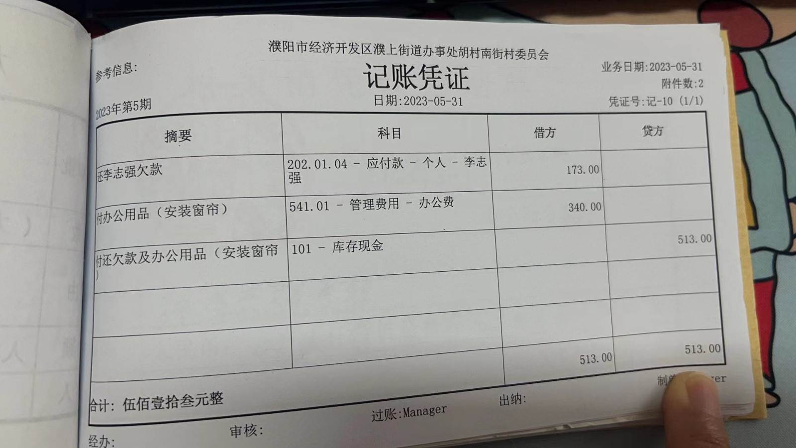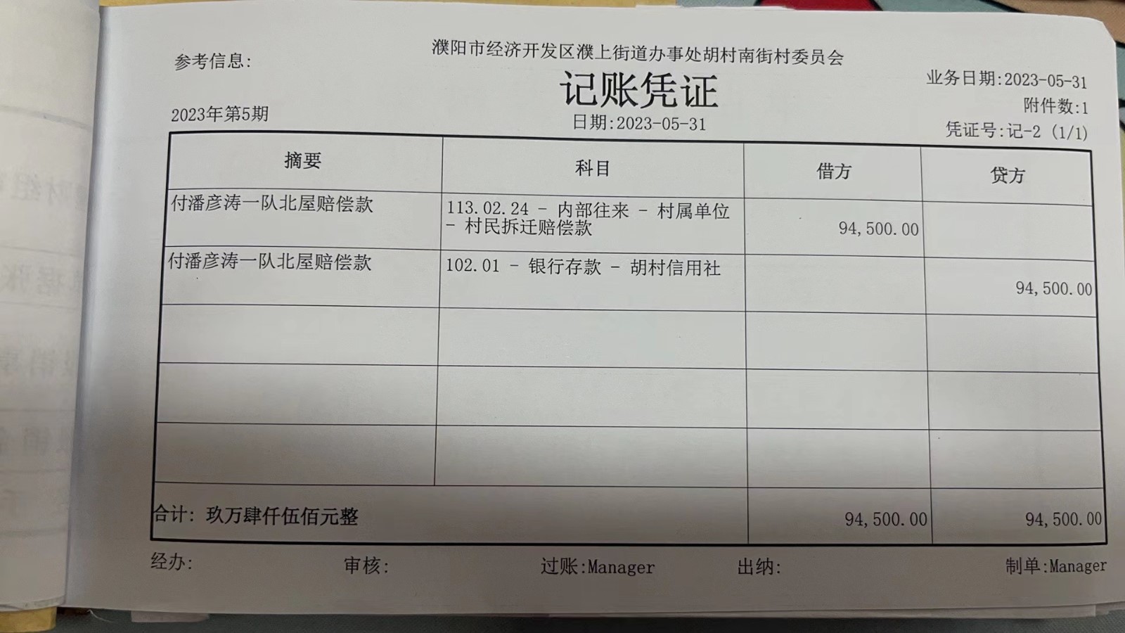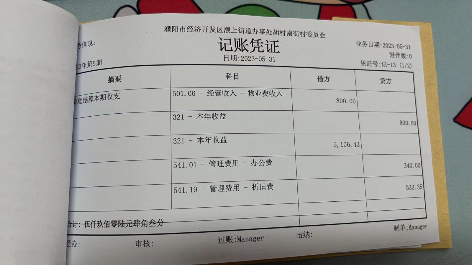 濮上办胡村南街2023年5月份财务公开