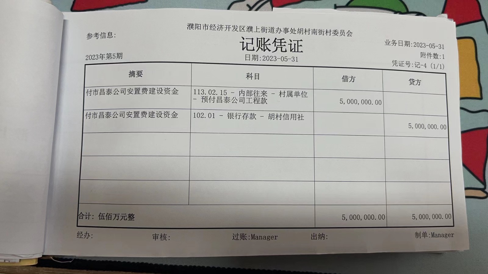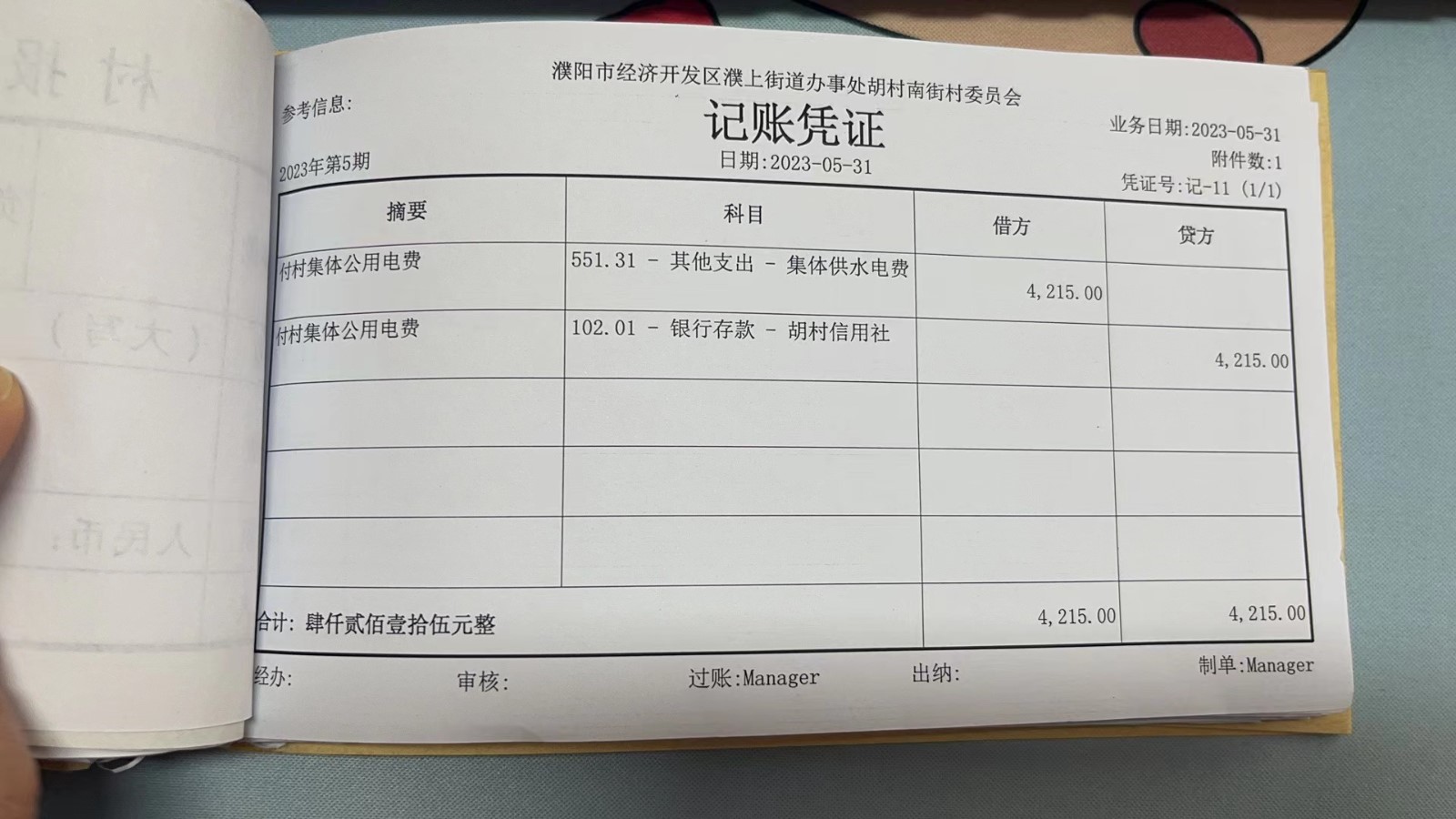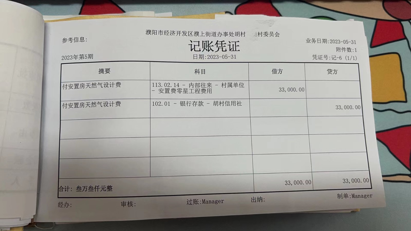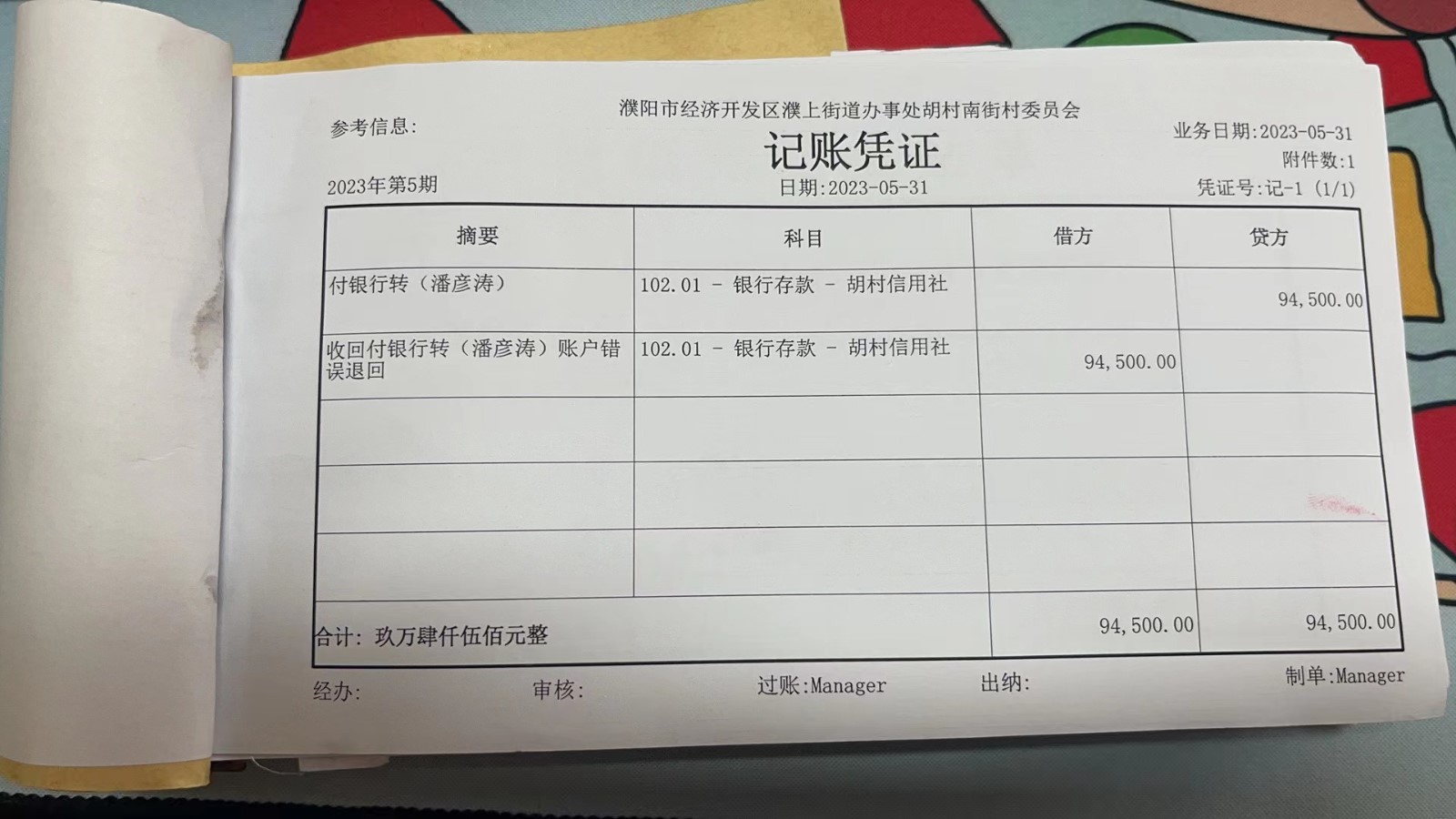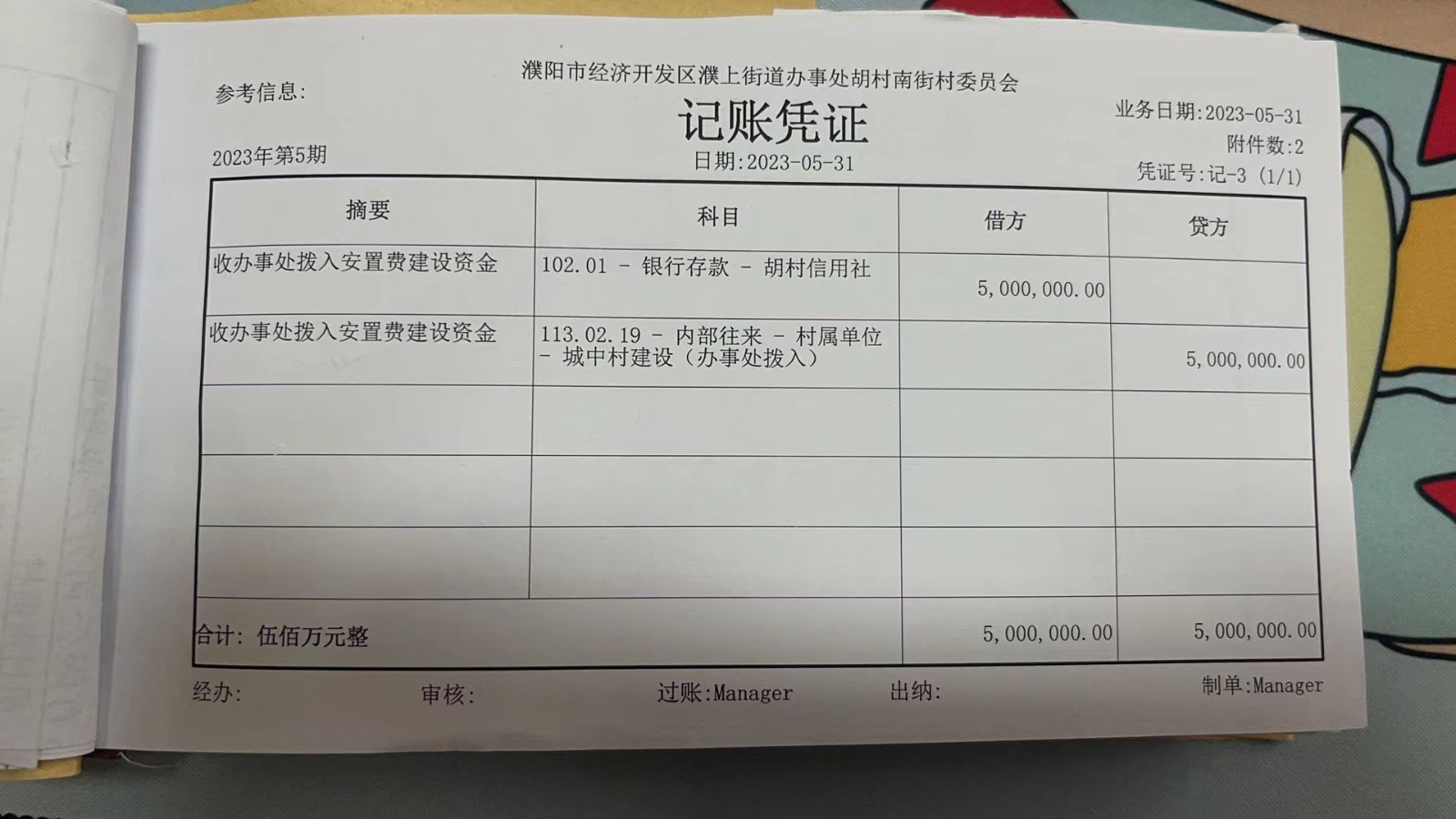 濮上办胡村南街2023年5月份财务公开