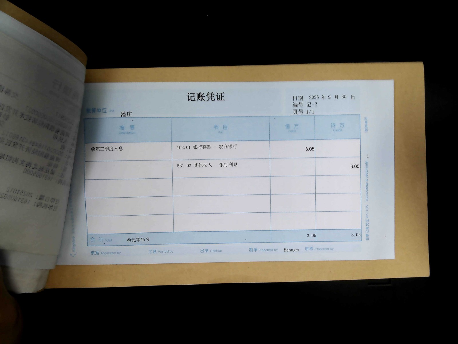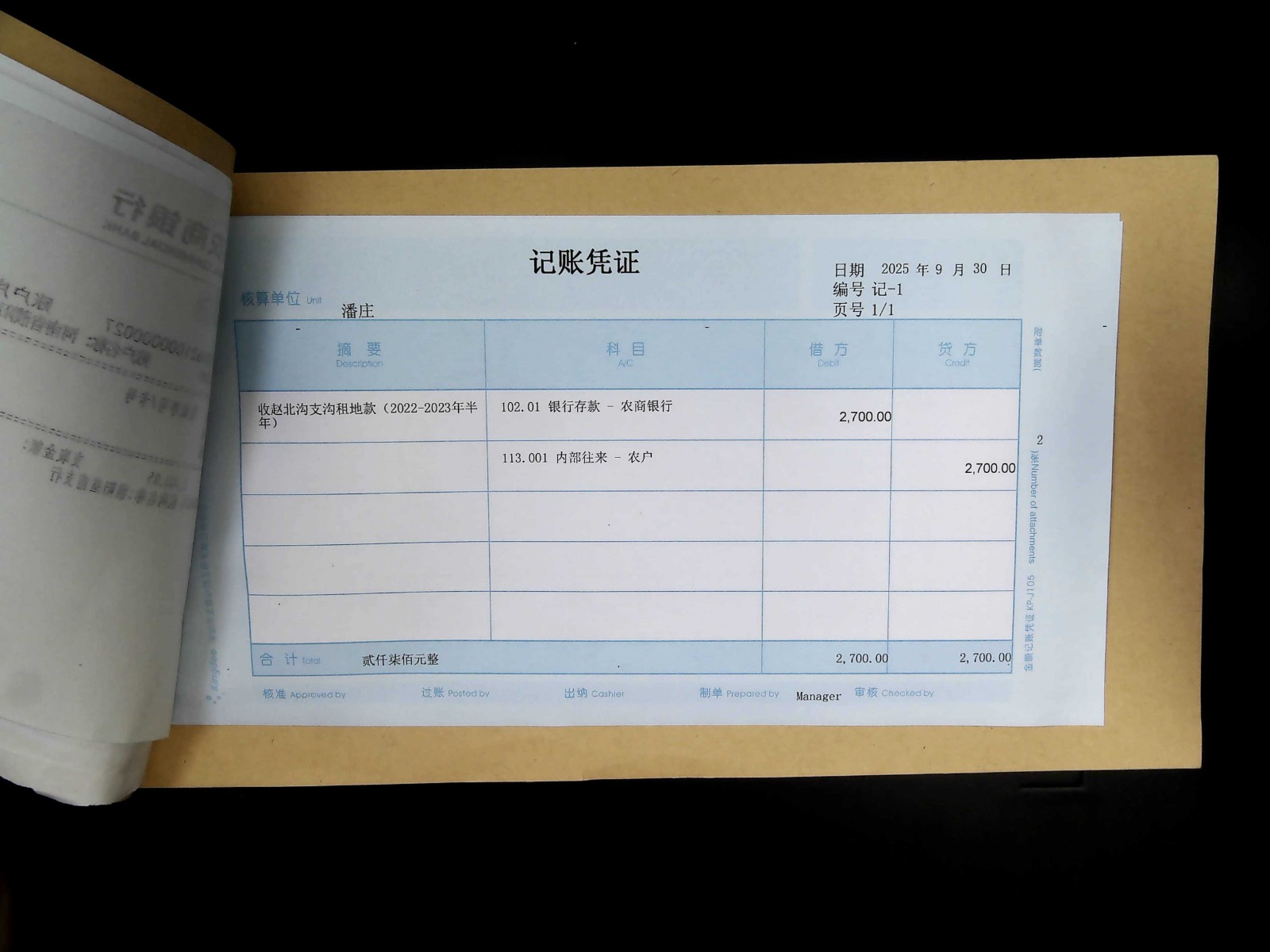 潘庄2025年9月记账凭证