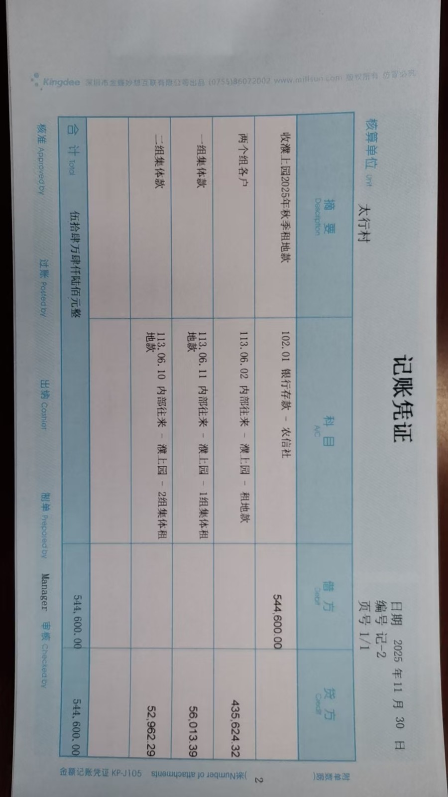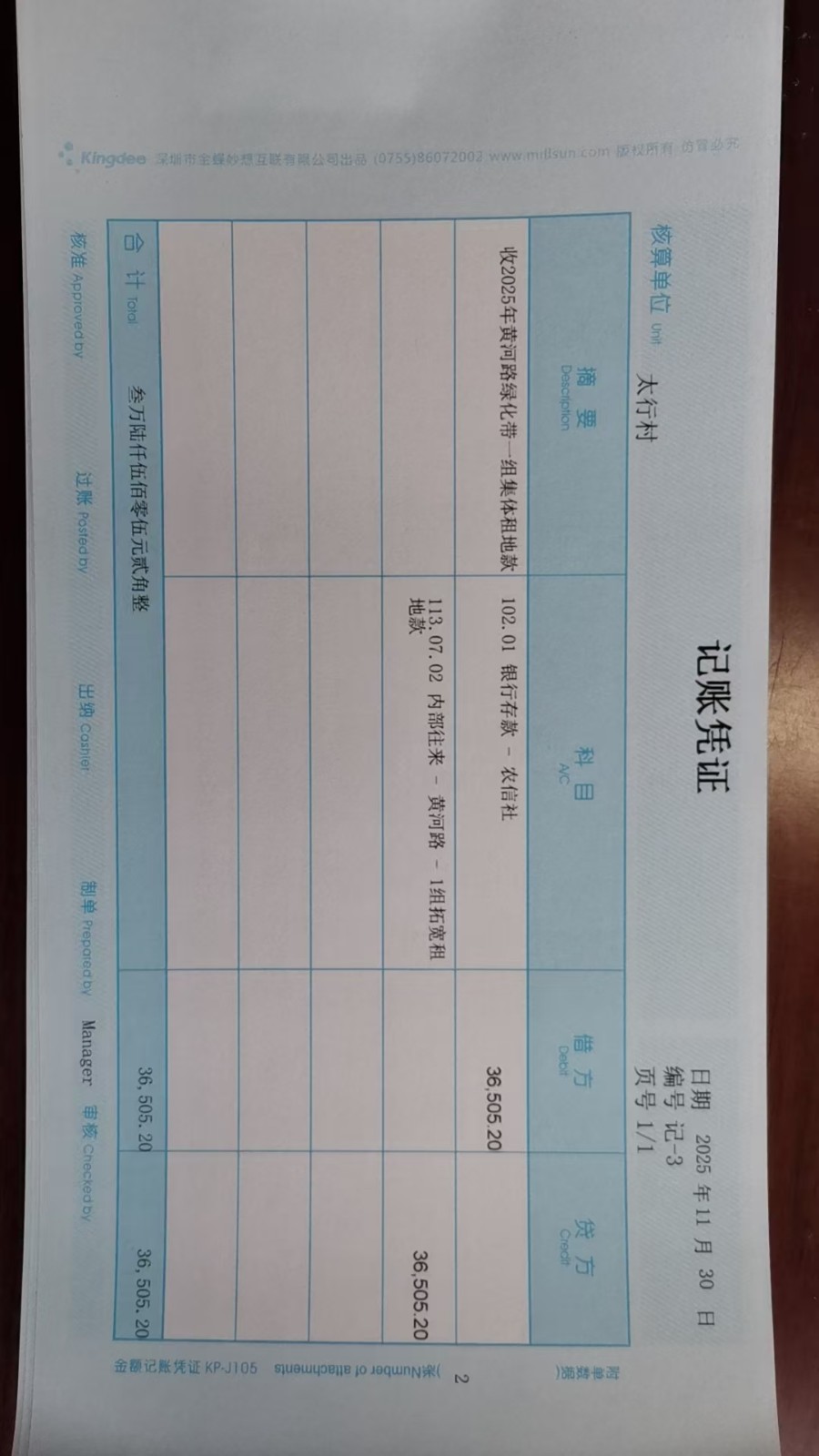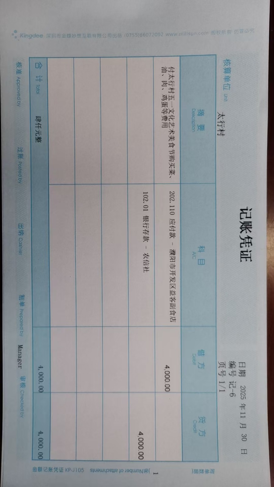 太行村2025年11月份凭证