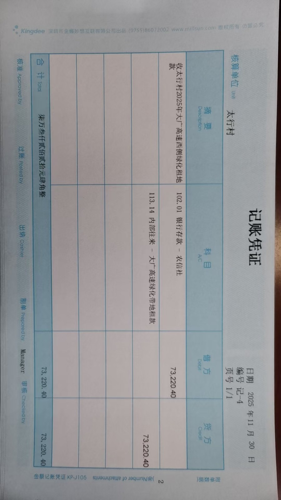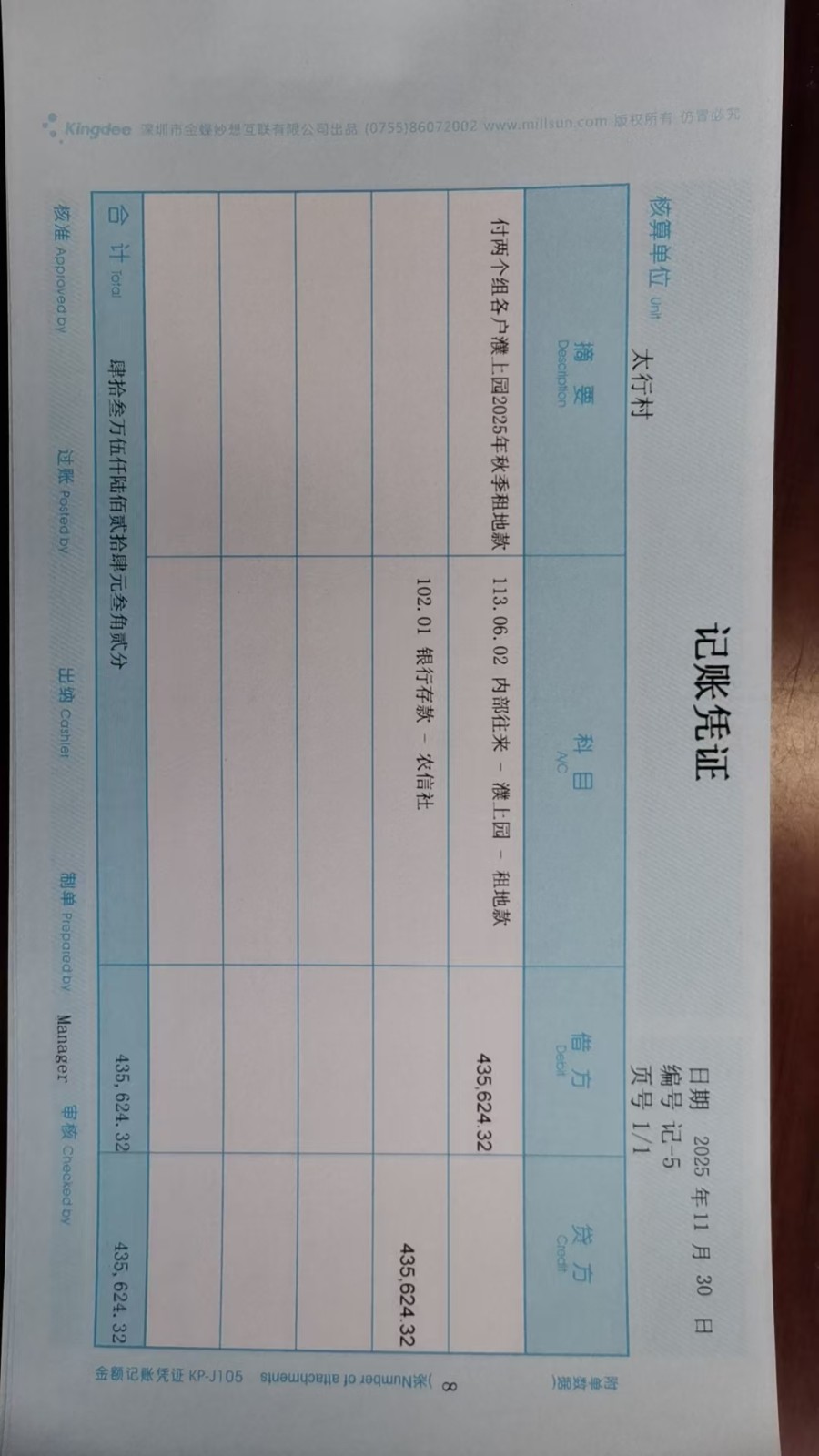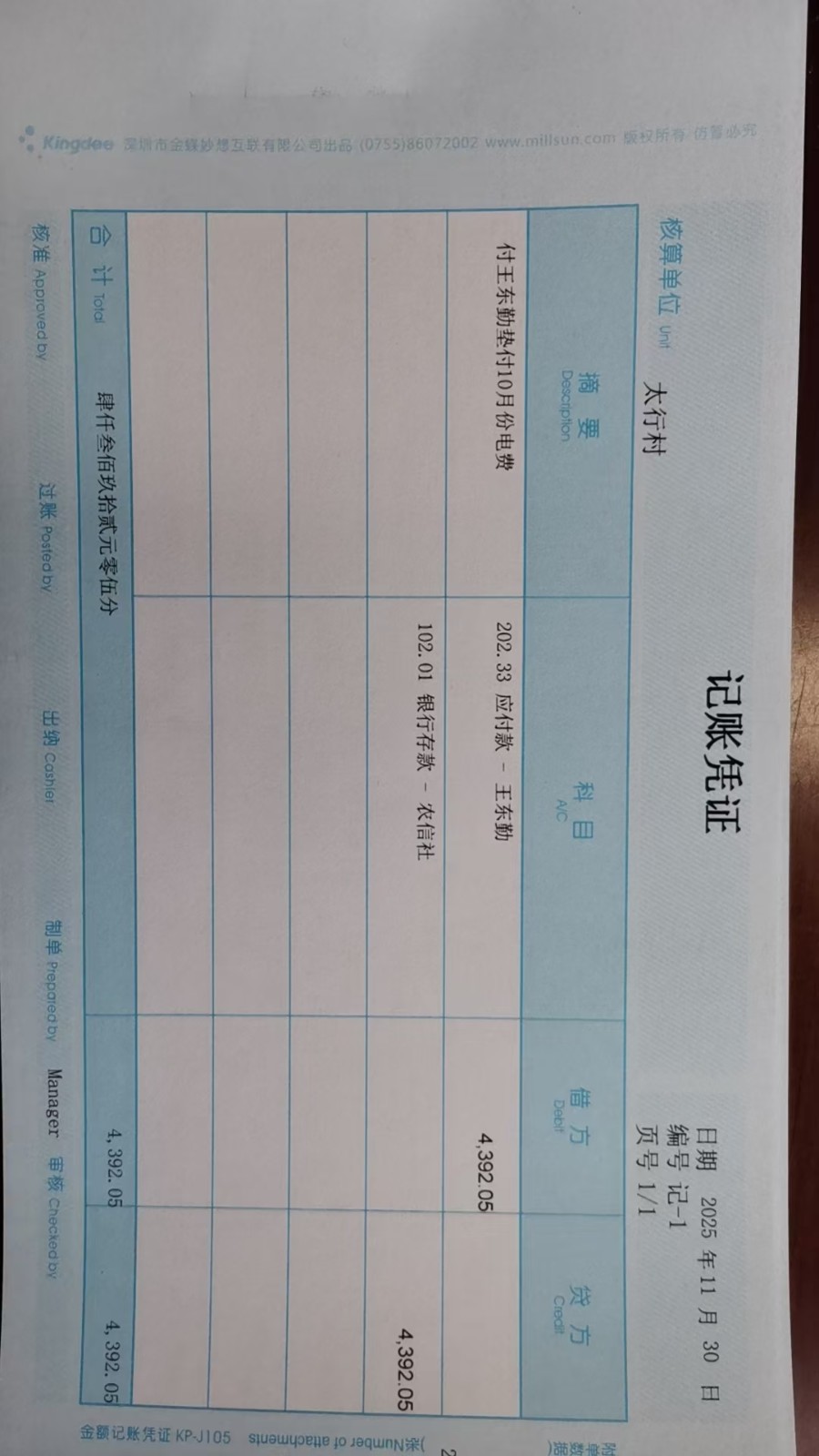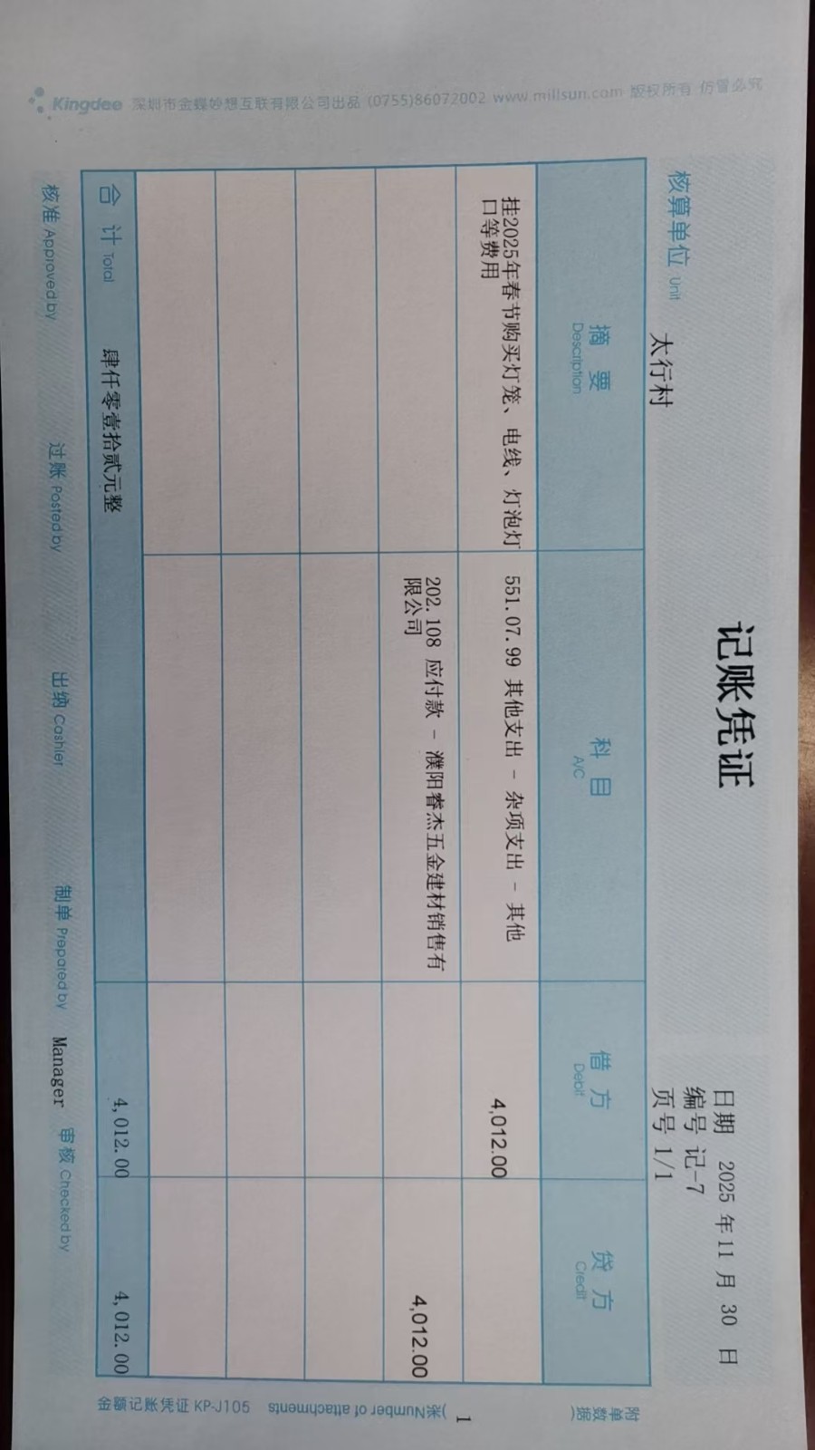 太行村2025年11月份凭证
