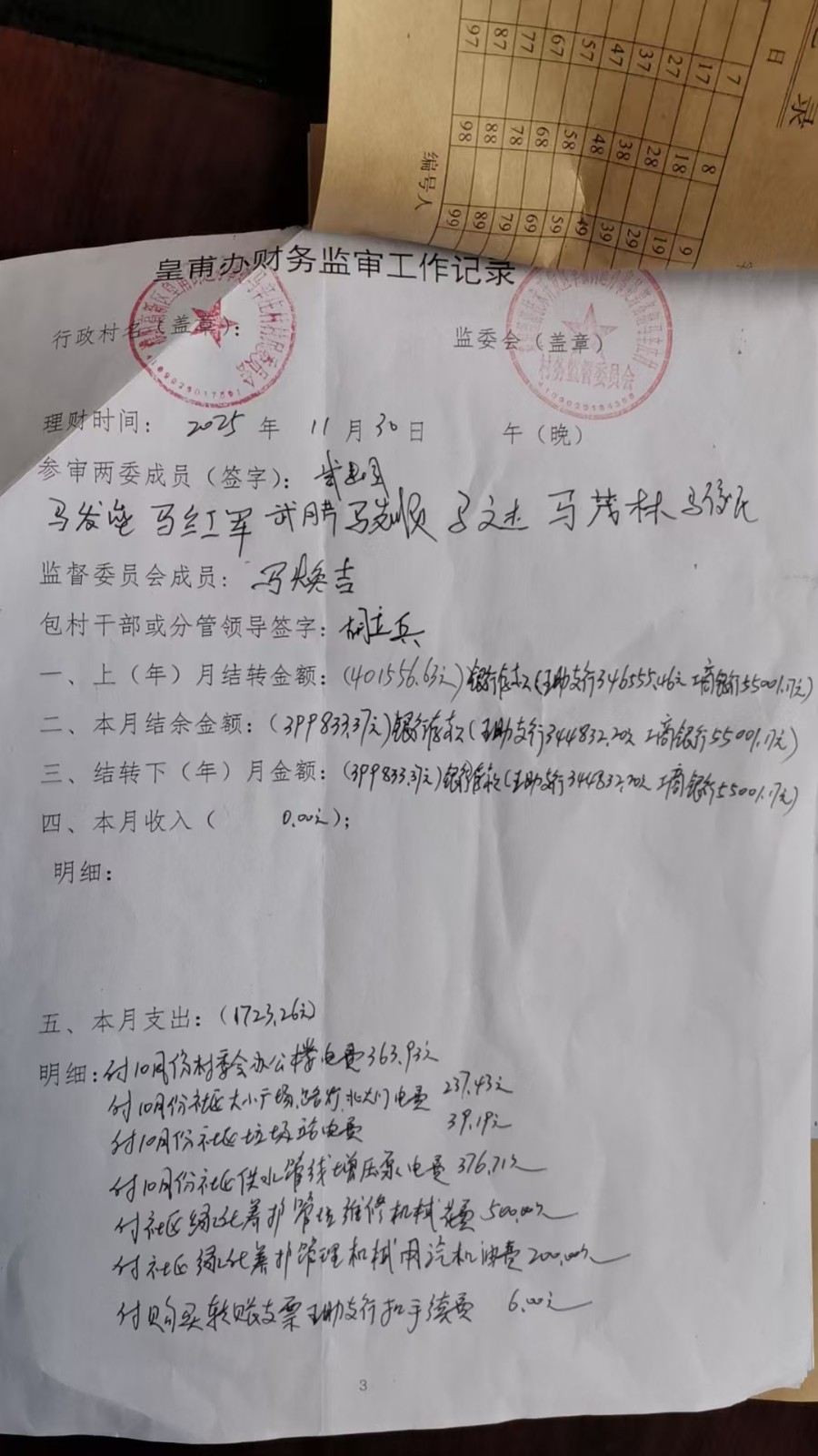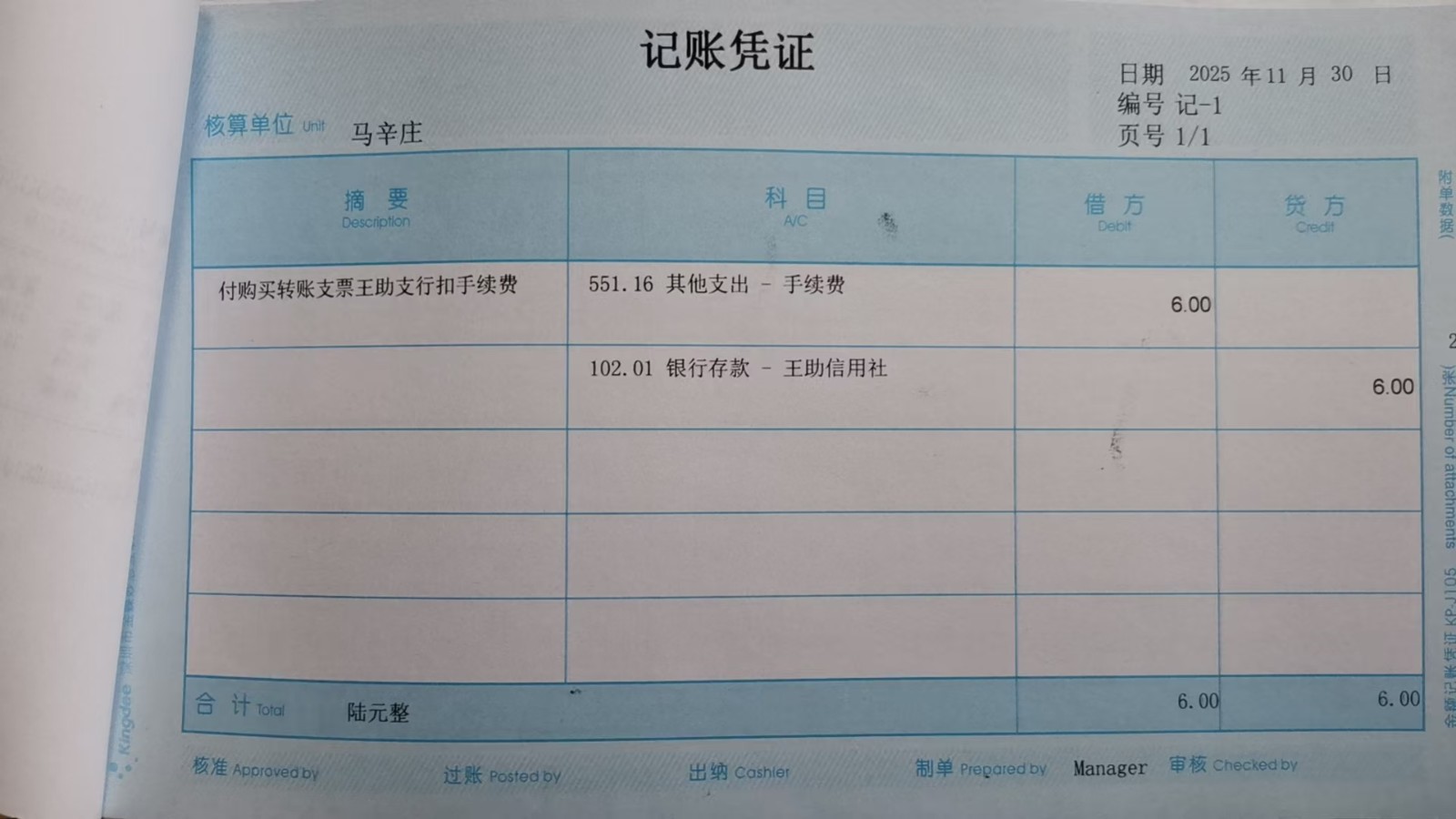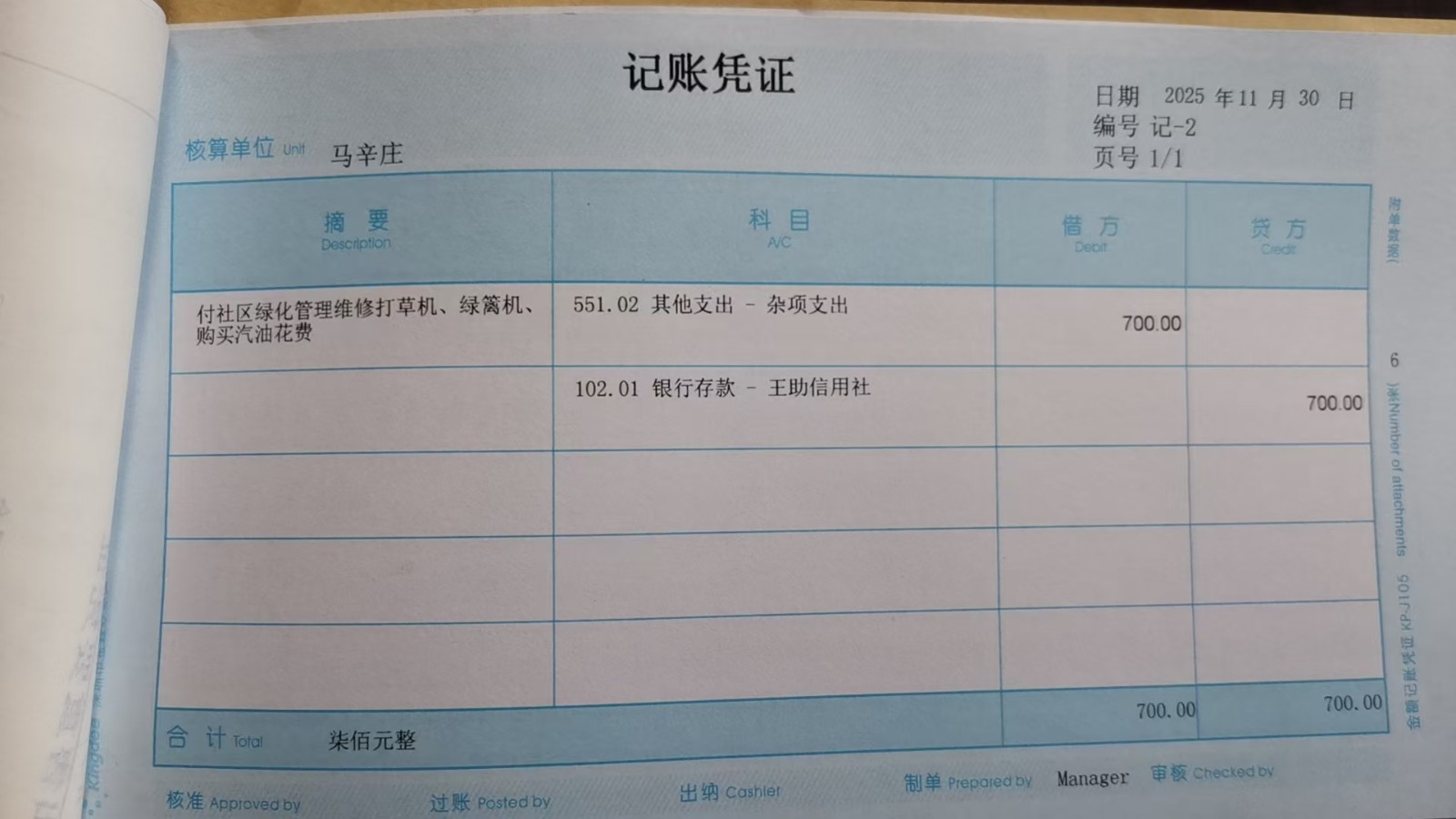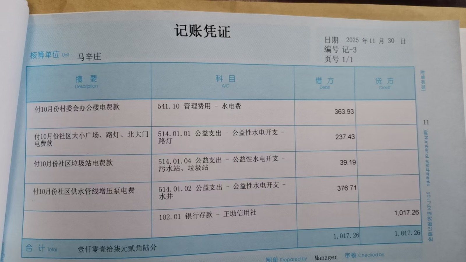 马辛庄 2025年11月份凭证